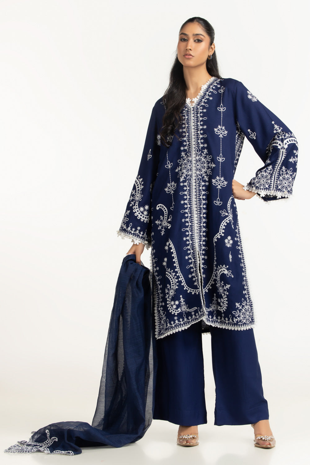 Deep navy tone gives this embroidered suit a composed, festive character. The viscose raw-silk fabric remains smooth and breathable, supporting long hours of wear. Finished in a regular fit, it maintains a neat and comfortable silhouette.
