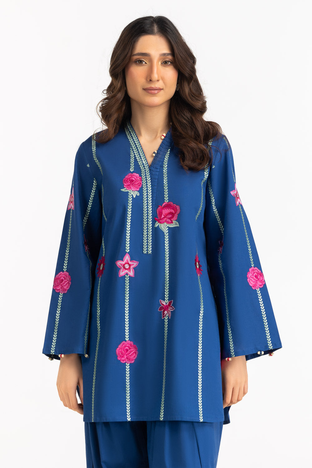 Easygoing elegance defines this floral embroidered co-ord set. The loose silhouette allows freedom of movement while the breathable fabric keeps you cool. A stylish yet comfortable outfit for everyday summer plans.