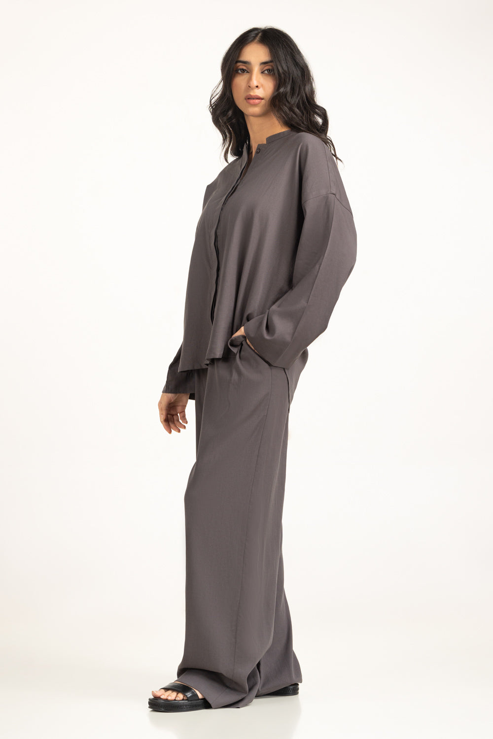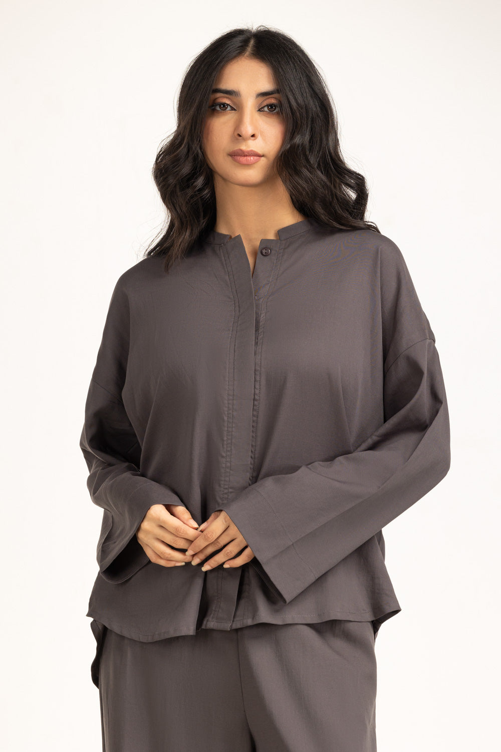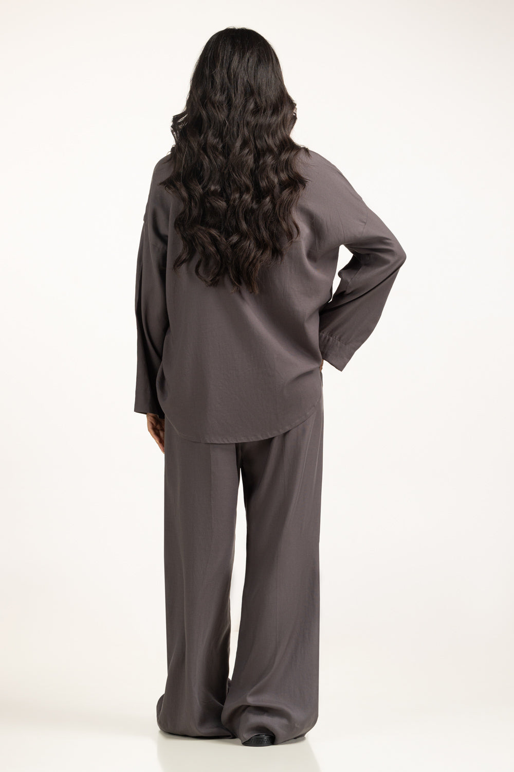 Tailored in a soft textured fabric, this shirt in a dark grey color delivers a minimalist yet powerful statement. The clean button-down design and structured silhouette bring a hint of urban sophistication. Ideal for everyday layering through winter.