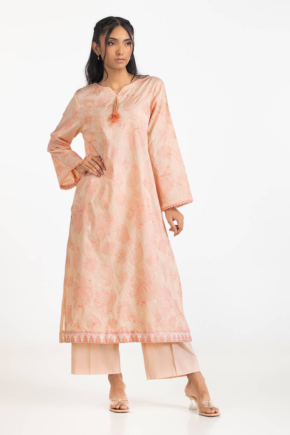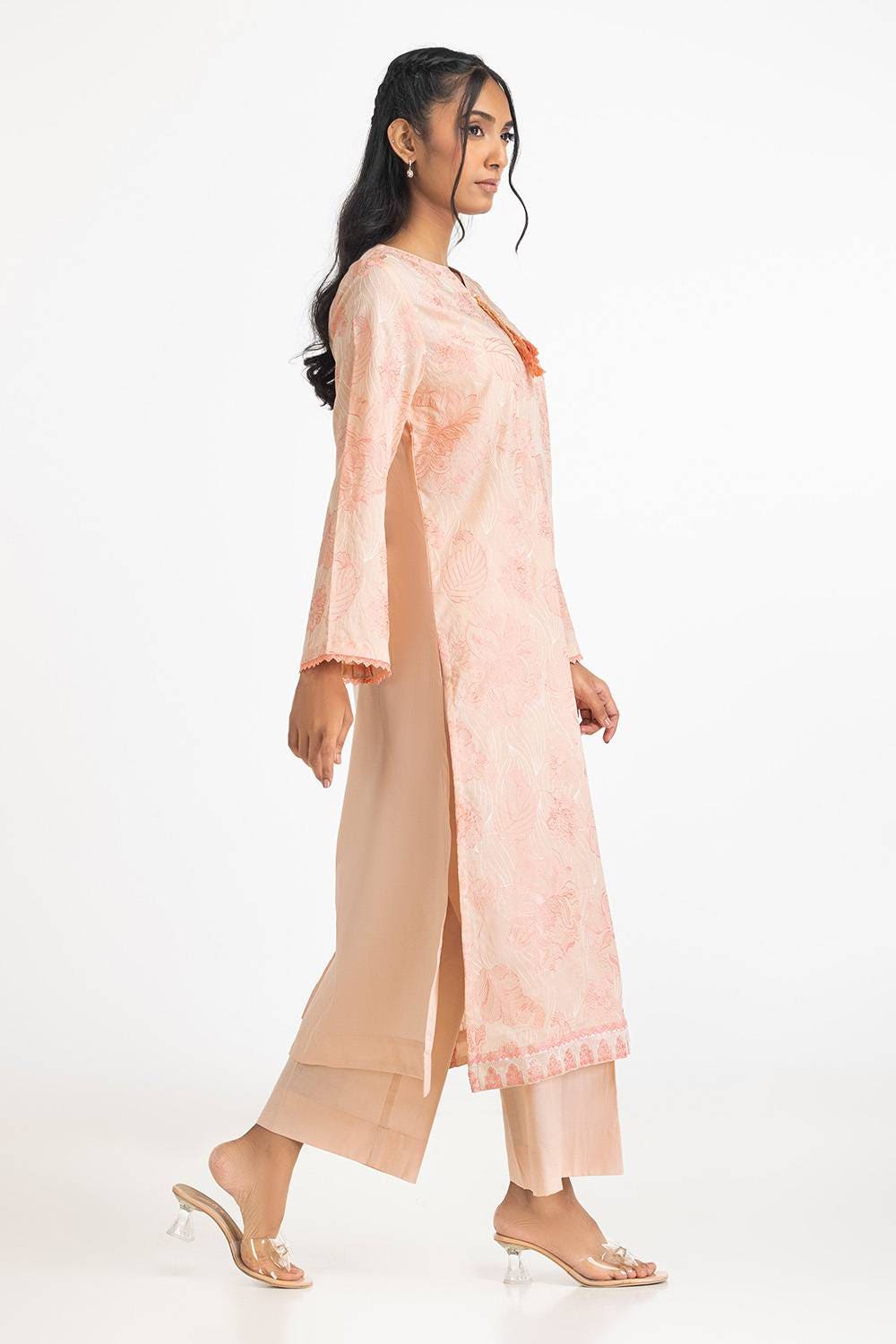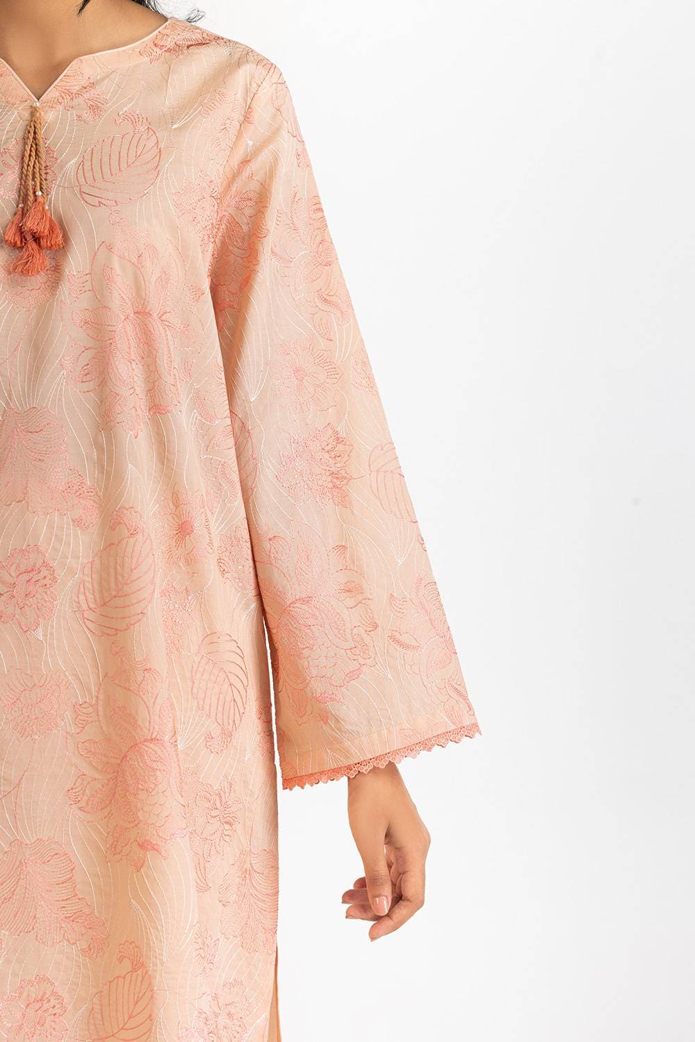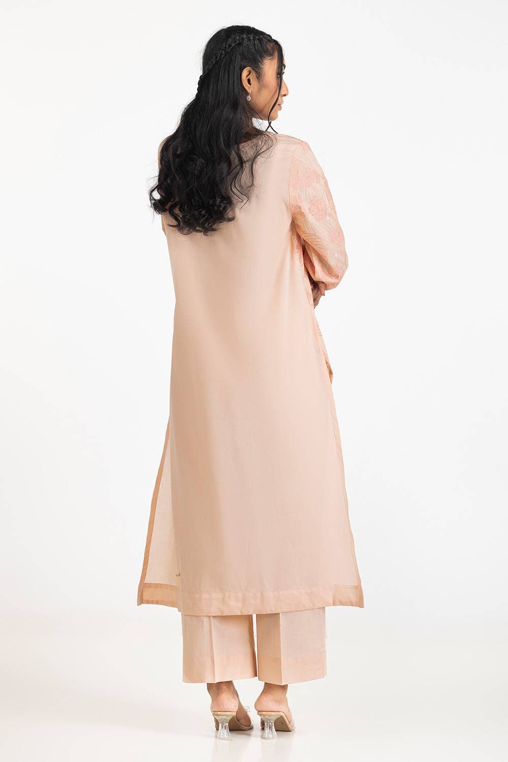 Ready to wear A soft peach floral outfit that brings effortless elegance to your wardrobe. Its delicate embroidery, wide leg trouser and lightweight fabric make it perfect for daytime events and casual outings.