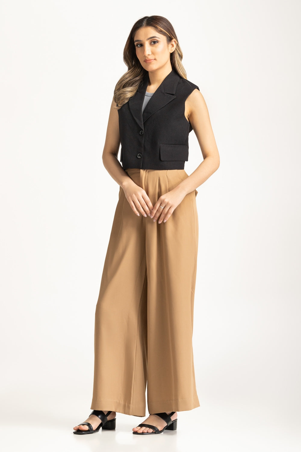 • Model height is 5' 5".