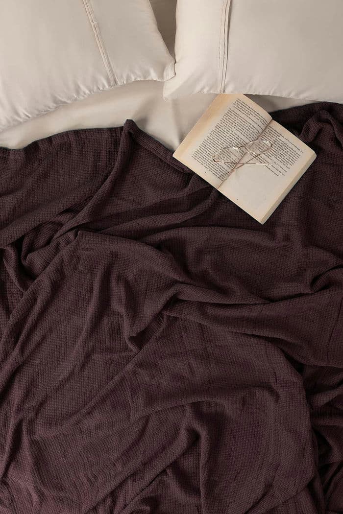 Use this pretty all-season blanket on your bed or as a lightweight throw. This bedding accessory is 100% cotton for a covering that's perfect for the cooler months of the year. Available in a variety of pretty colors, this blanket complements most decors and is machine washable for your convenience. Ranging in solid color tones from muted darker shades to light pastels.