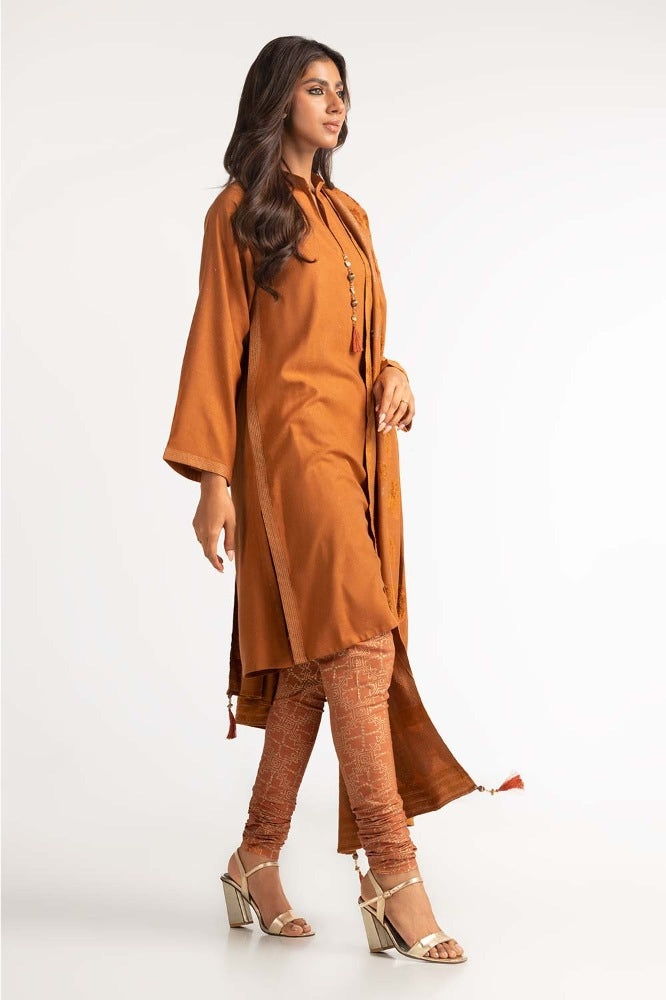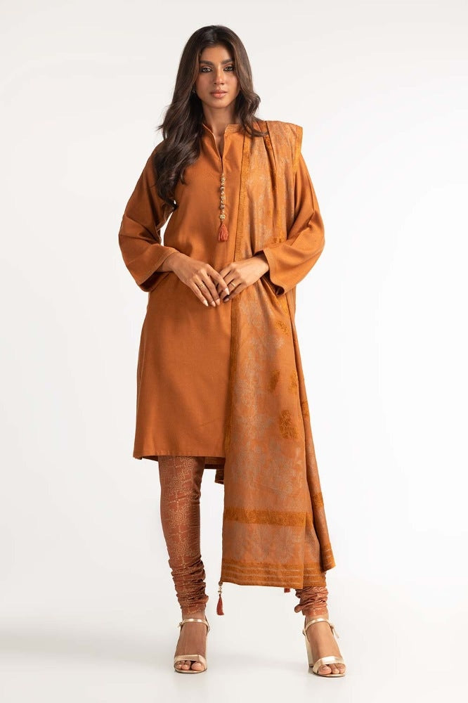 Dyed Acrylic Viscose Shirt With Velvet Jacquard Shawl GLM-23-61