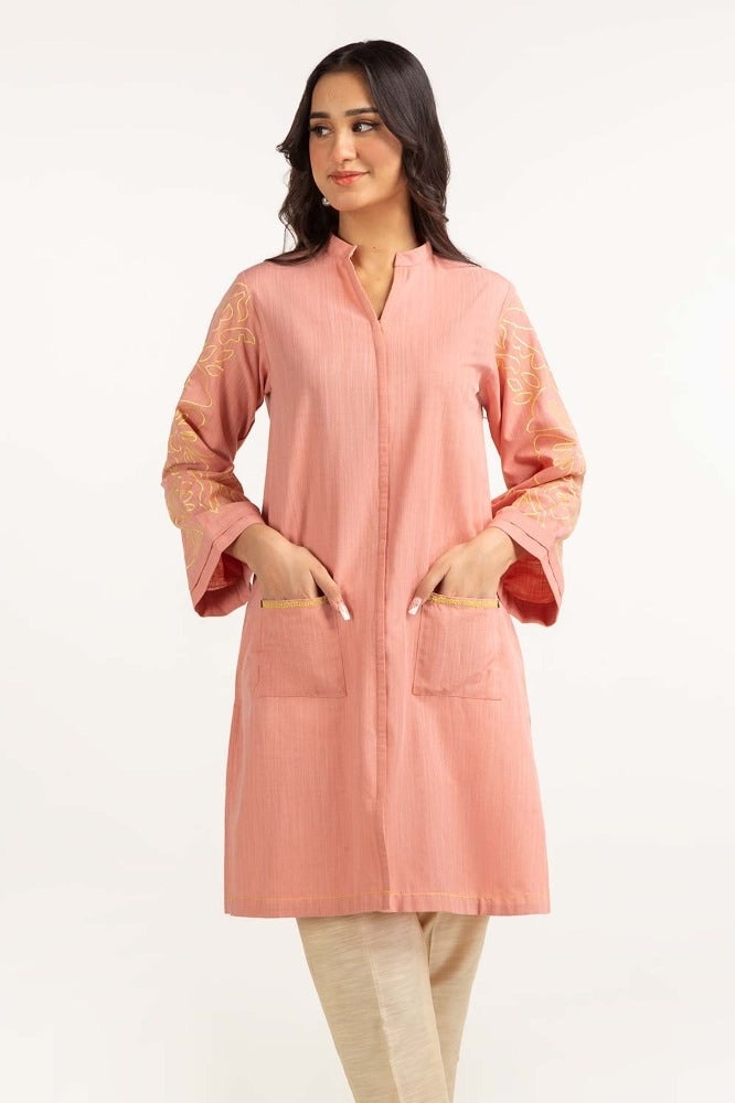 Ready to wear Dyed Cotton Yarn Dyed Shirt with a round collar and a long placket with A-line cut, 2 front pockets and wide sleeves.