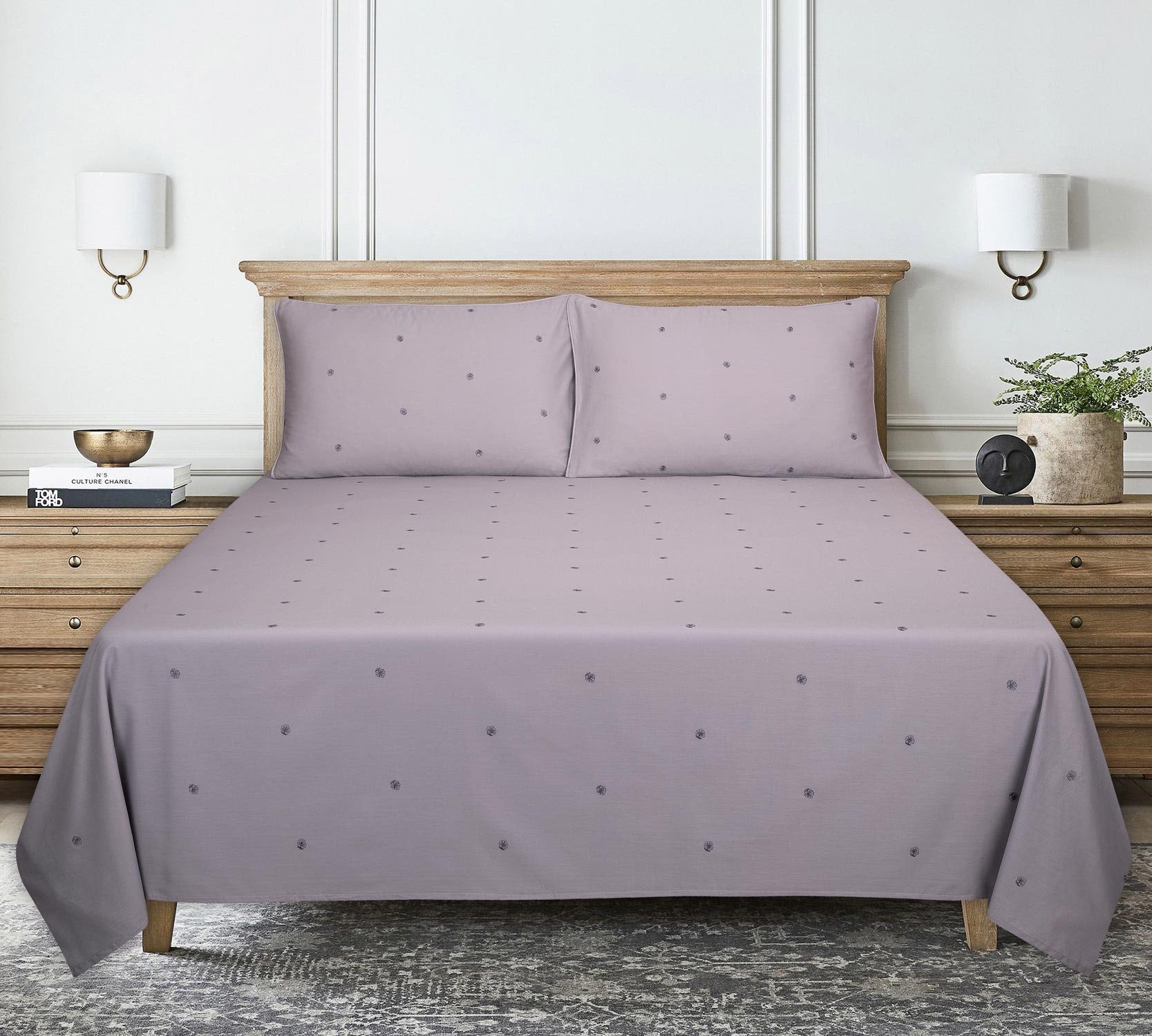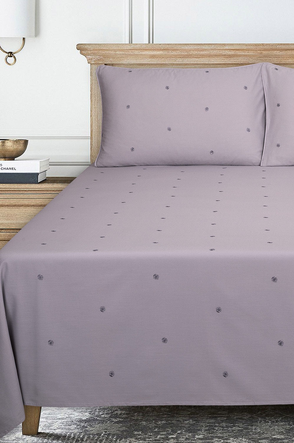 Lavender Dyed Embroidered T-150 Bed Sheet Set