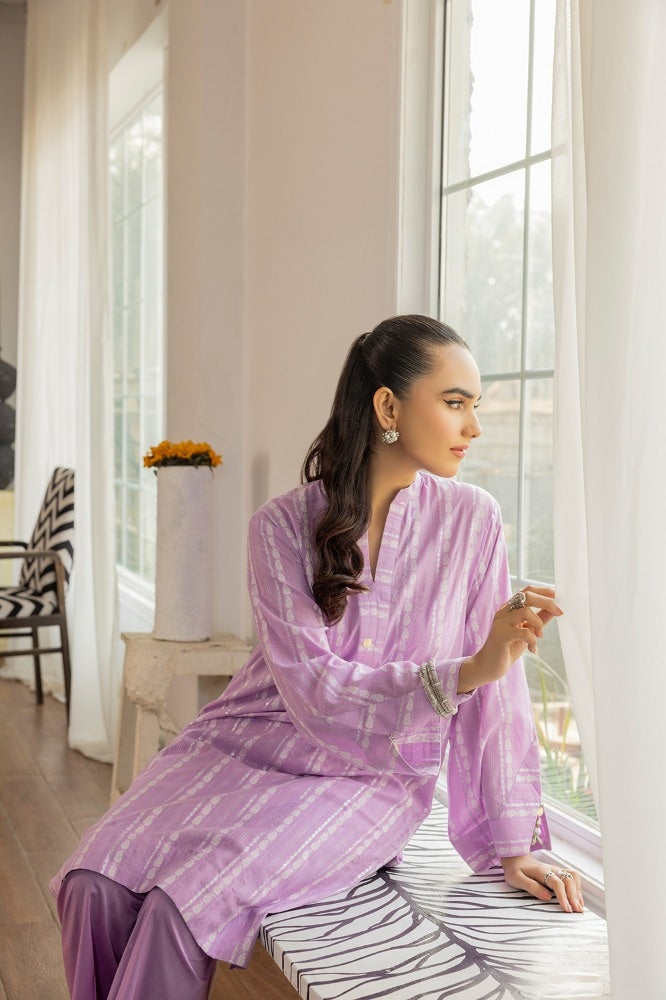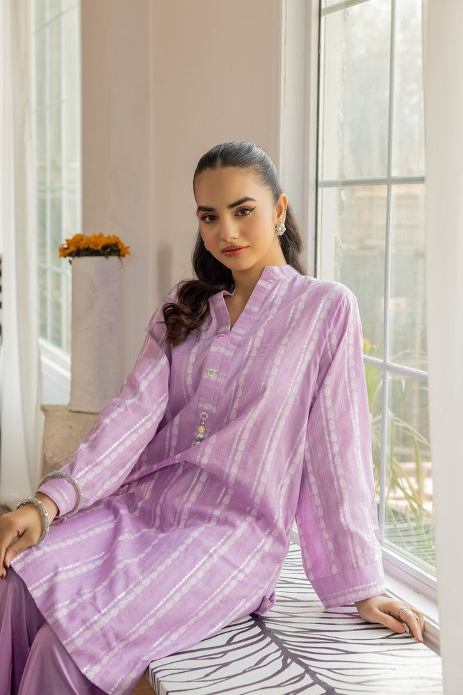 Ready to wear 2Pc lurex jacquard shirt and dyed cambric Trouser with neck and sleeves handwork.