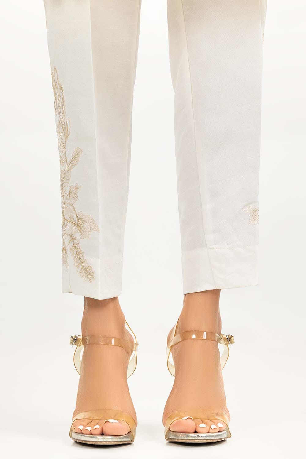 Dyed cream Indian Raw Silk trousers with embroidery work