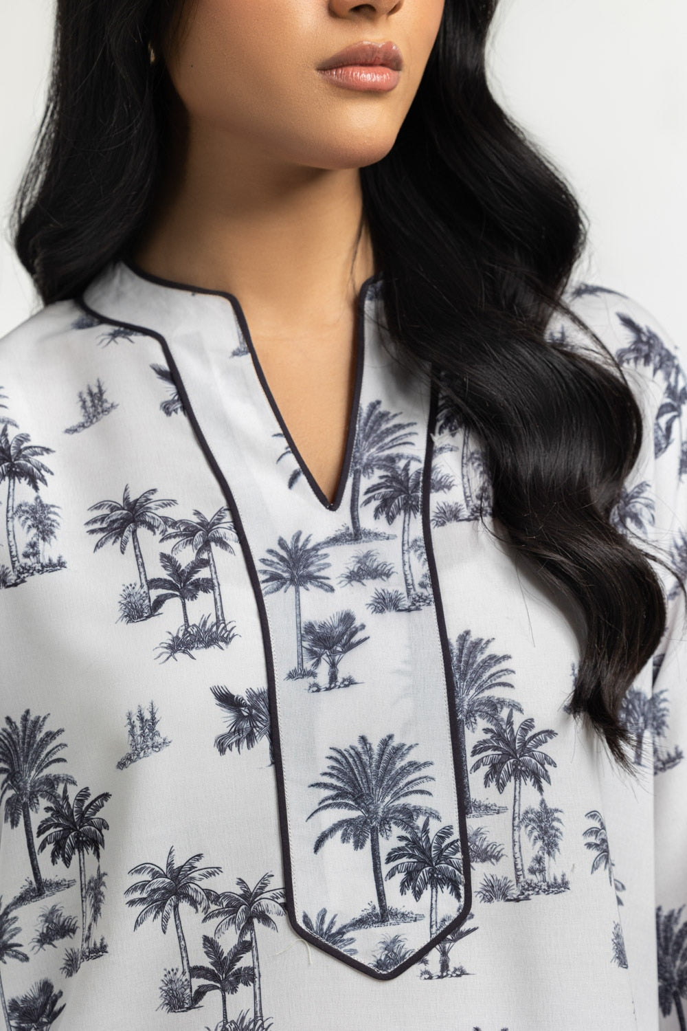 Versatile co-ord set in a regular fit is a fashion-forward design this summer season. The detailed toile print and double piping on the neckline and sleeves adds sophistication and elegance in your look.