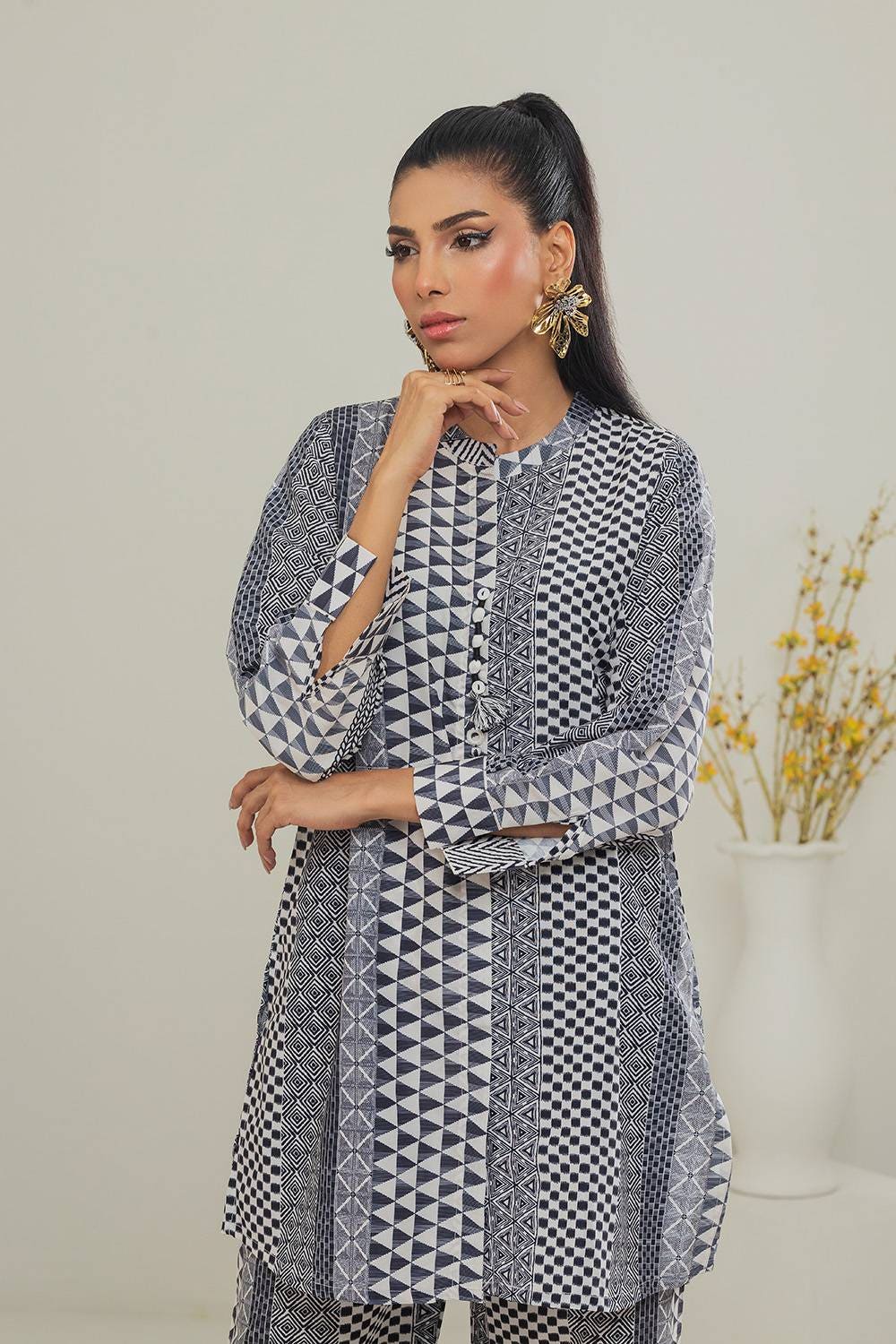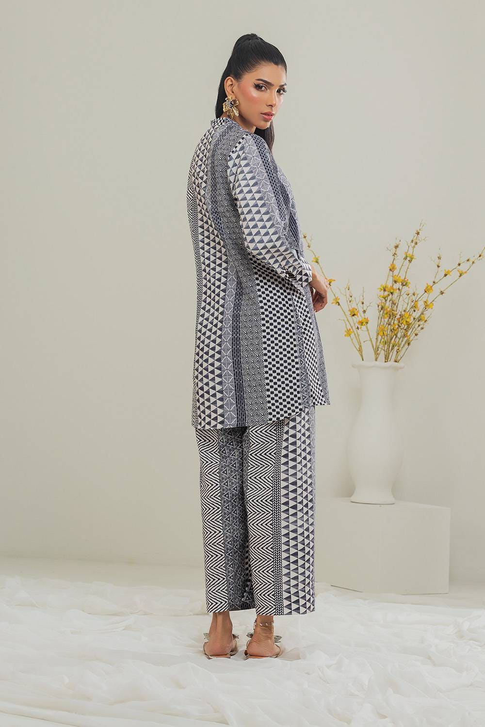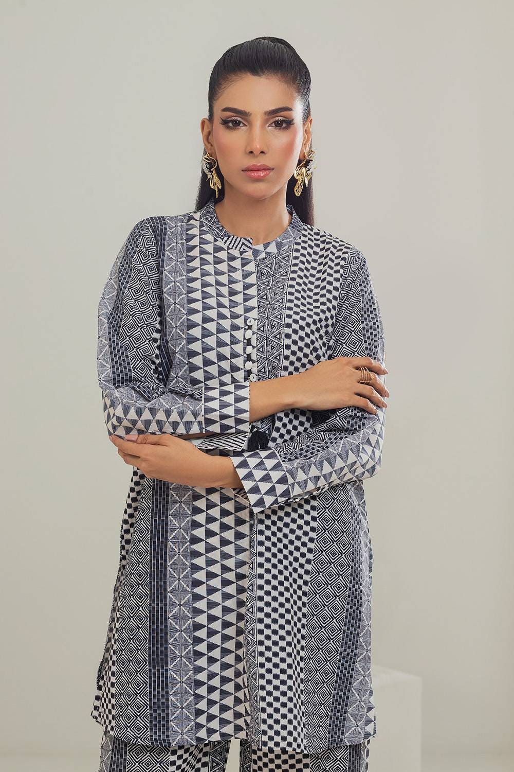 Ready to wear Create a style statement with this monochromatic 2PC co-ord set. The kurta features a mix of classic geometric , a round neckline, short length, rounded hem and highlighted with a matching tassels at the placket. The seamless pattern throughout the dress and makes it an ideal ensemble.