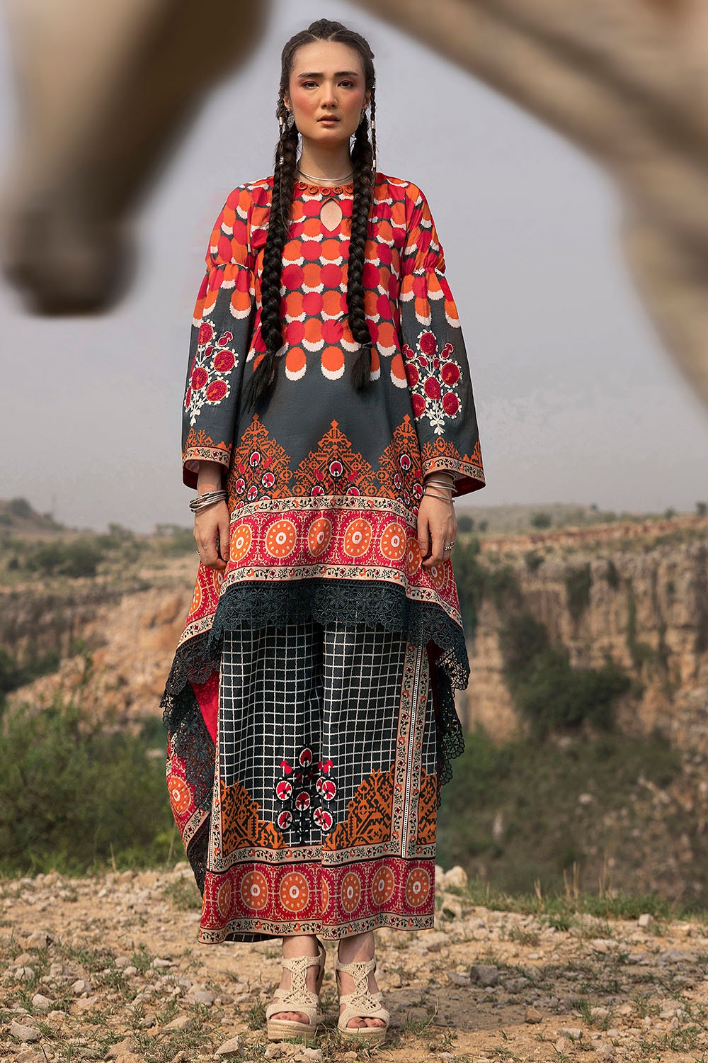 2 Piece Unstitched Printed Lawn Suit with Embroidered Bunches on Organza TL-52152