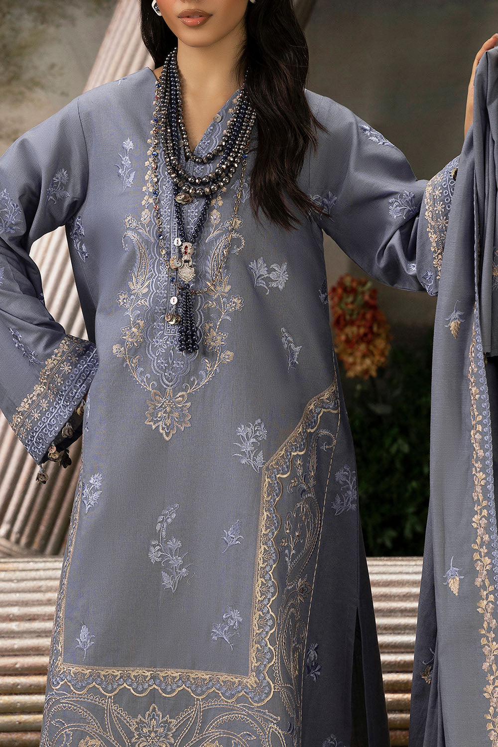 • Embroidered Khaddar Dupatta - 2.50 Meters