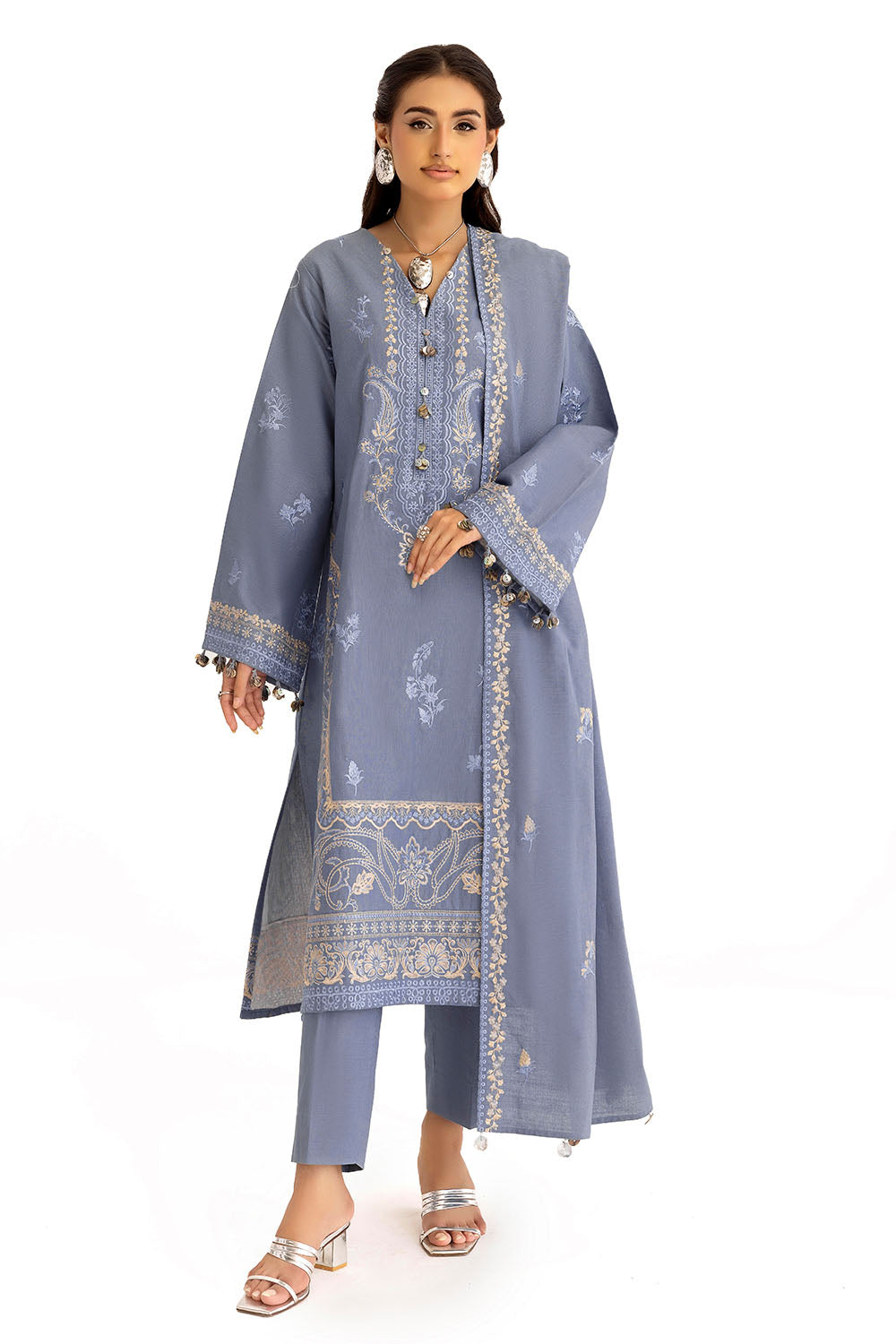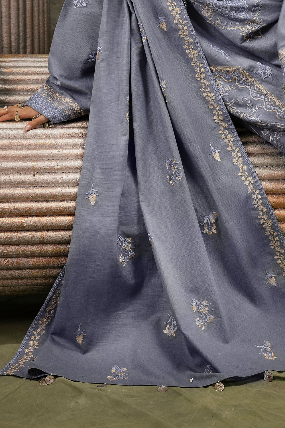 • Embroidered Khaddar Shirt Front Panel, Side Panels, Back & Sleeves with Embroidered Borders for Front & Back - 2.98 Meters