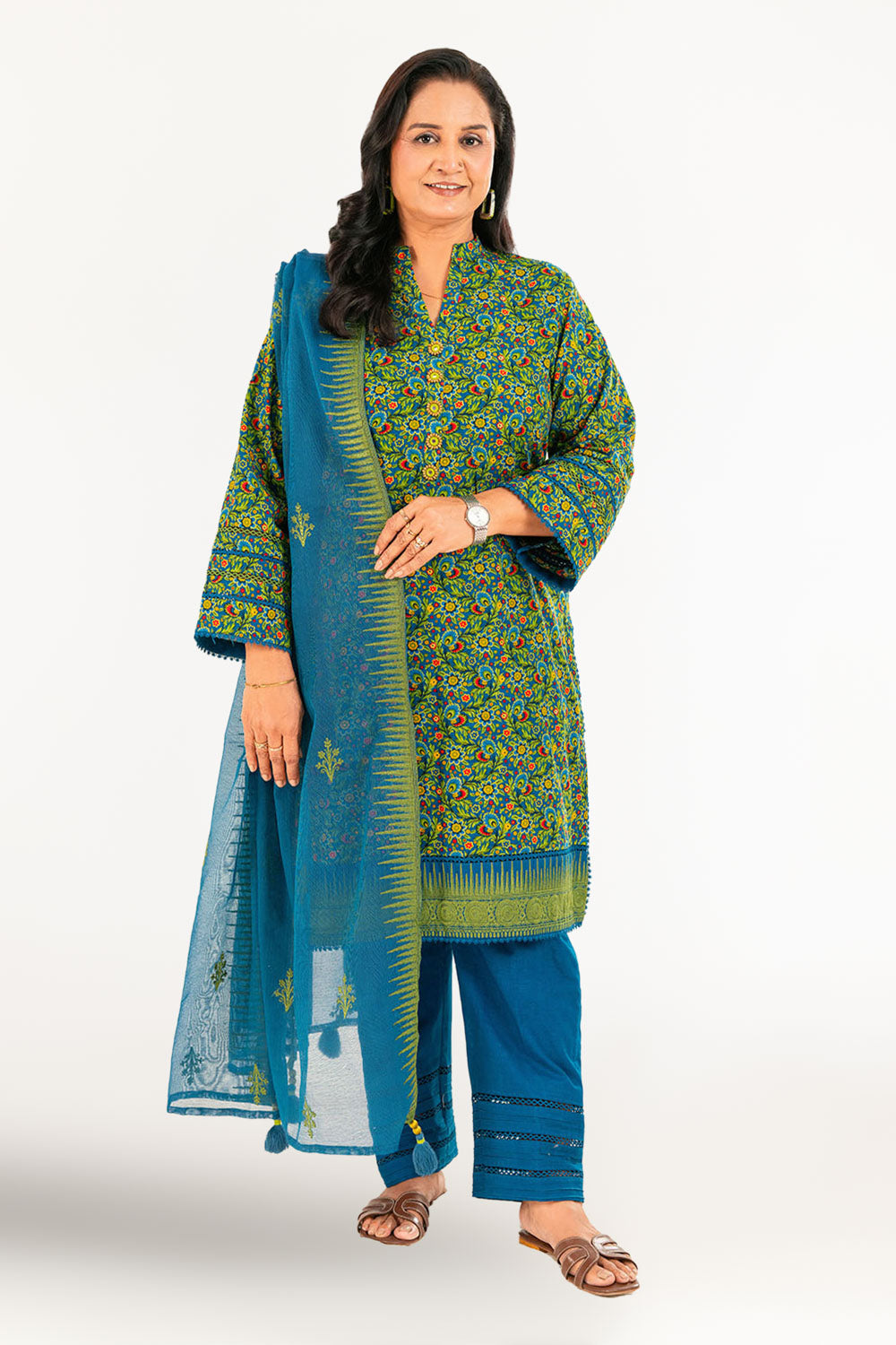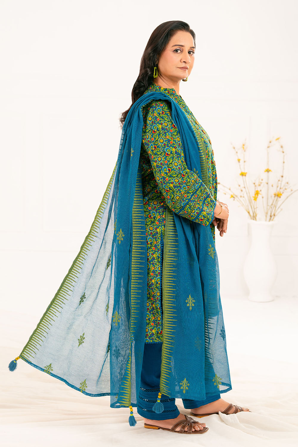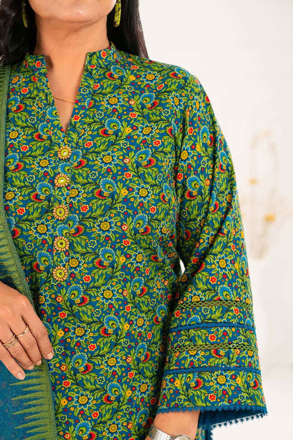 • Printed Khaddar Shirt with Embroidered Border for Shirt Front - 1.75 Meters
