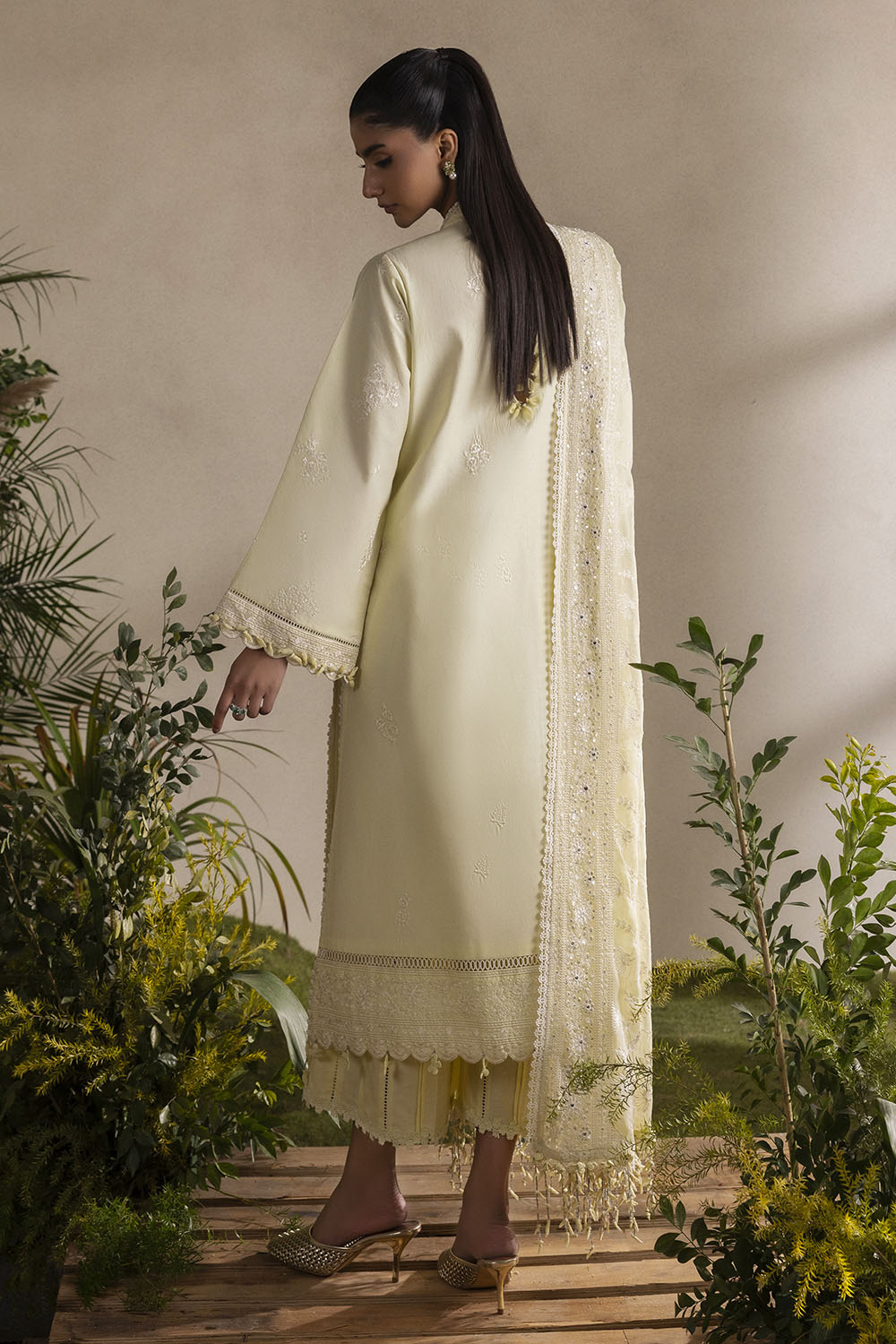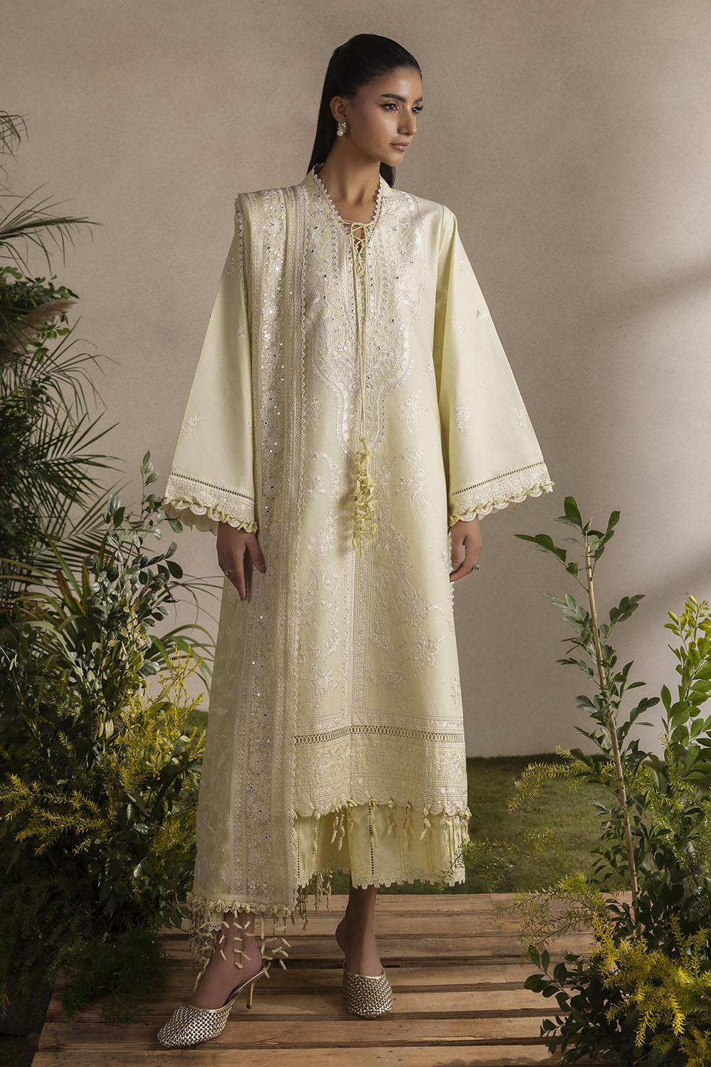 • Embroidered Lawn Shirt Front Panel, Side Panels, Back & Sleeves with Embroidered Borders for Front & Back – 2.53 Meters