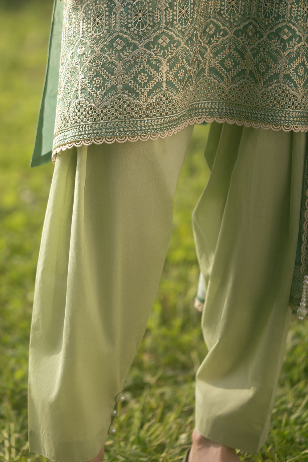 • Embroidered Lawn Shirt Front with Printed Lawn Back. Embroidered Neckline, Embroidered Borders, Embroidered Lace & Embroidered Bunches on Organza – 2.30 Meters