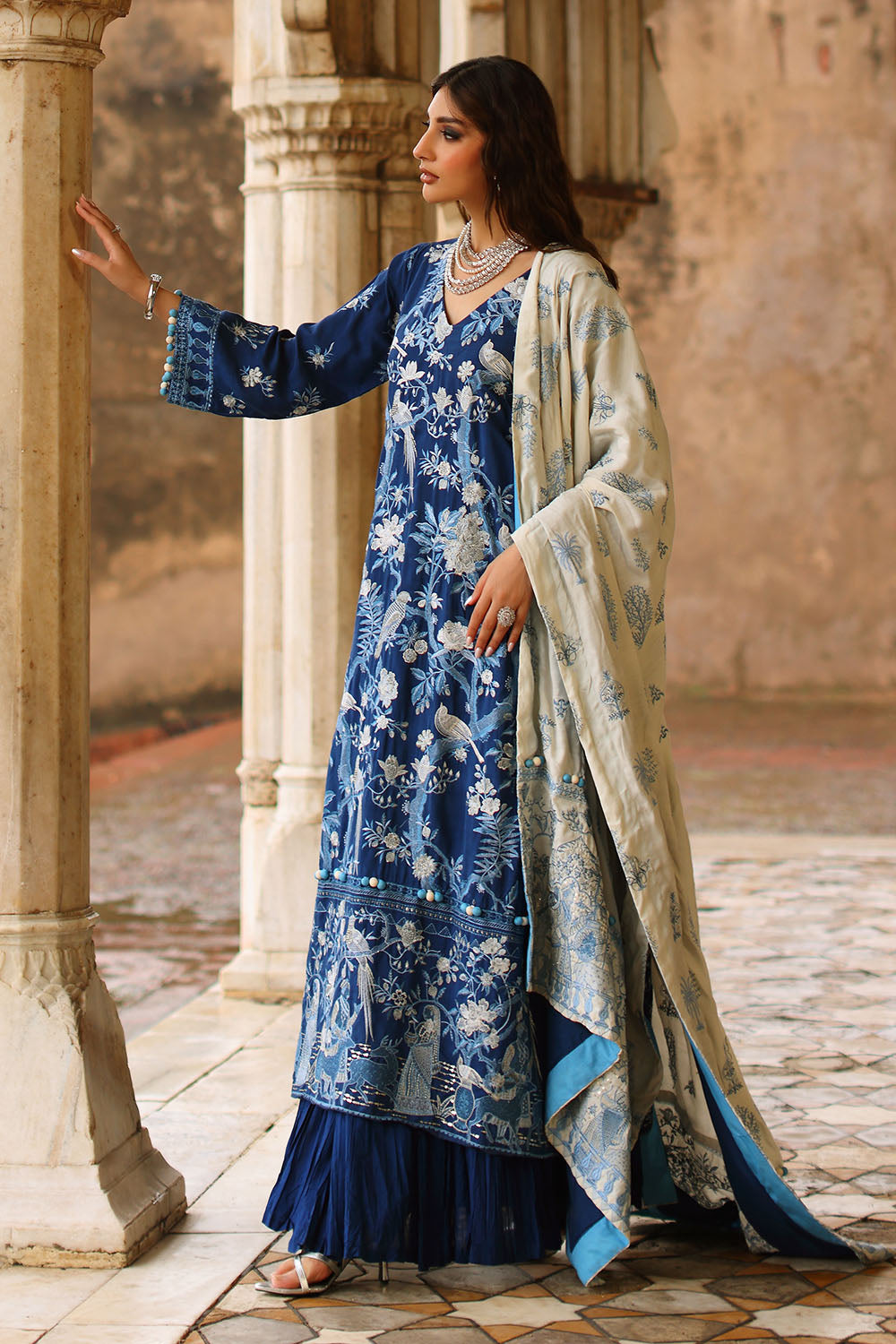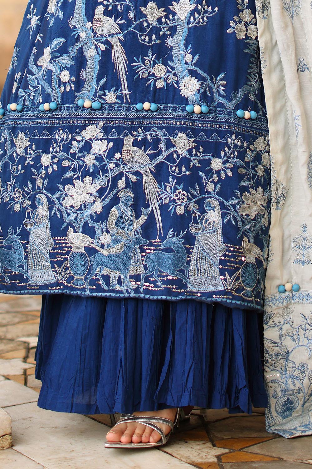 • Embroidered Raw Silk Shirt Front, Side Panels & Sleeves with Embroidered Raw Silk Borders for Front & Back. Dyed Raw Silk Back - 2.73 Meters