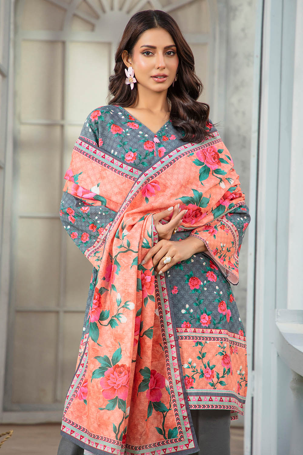 • Printed Khaddar Dupatta - 2.35 Meters