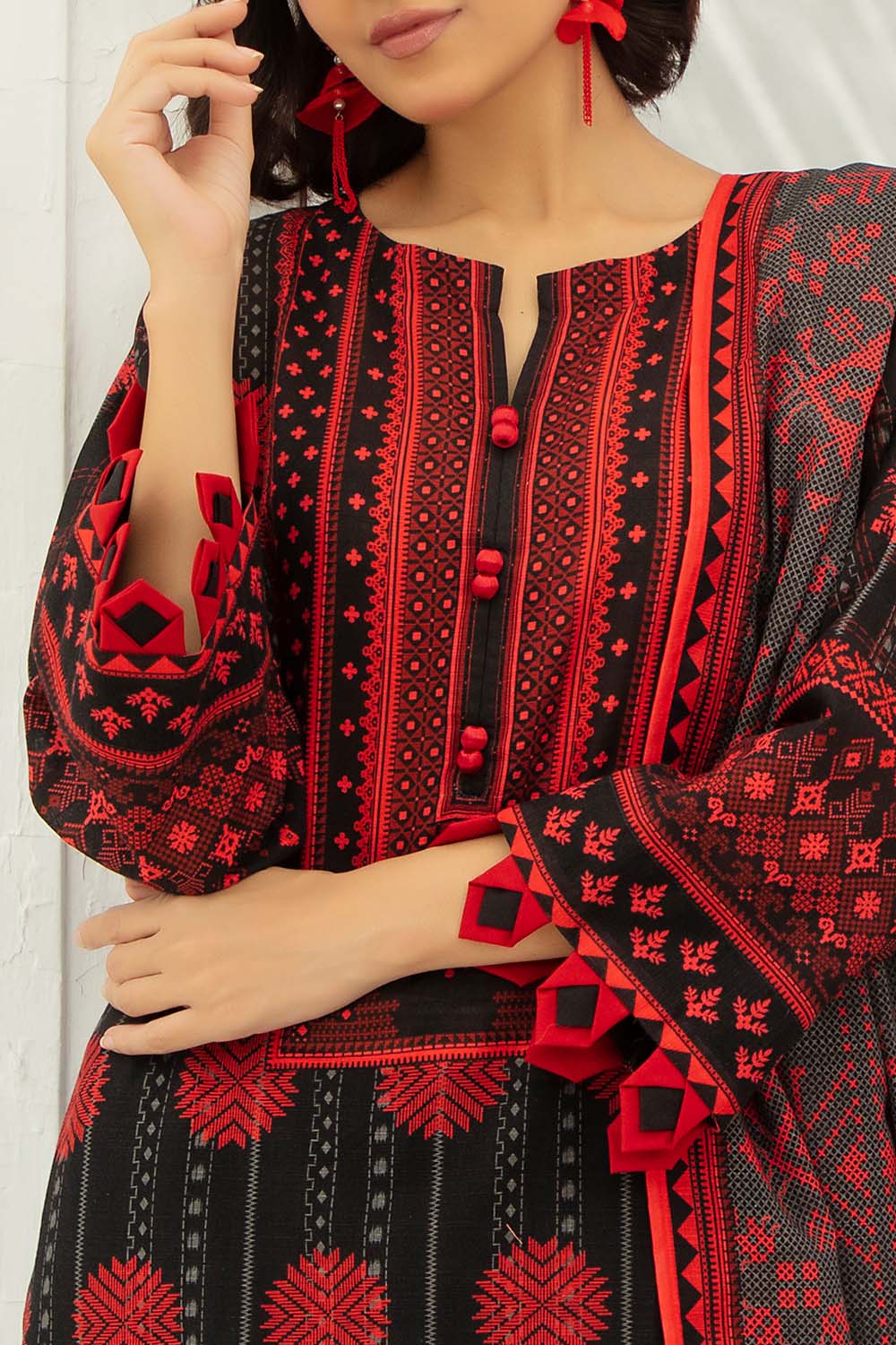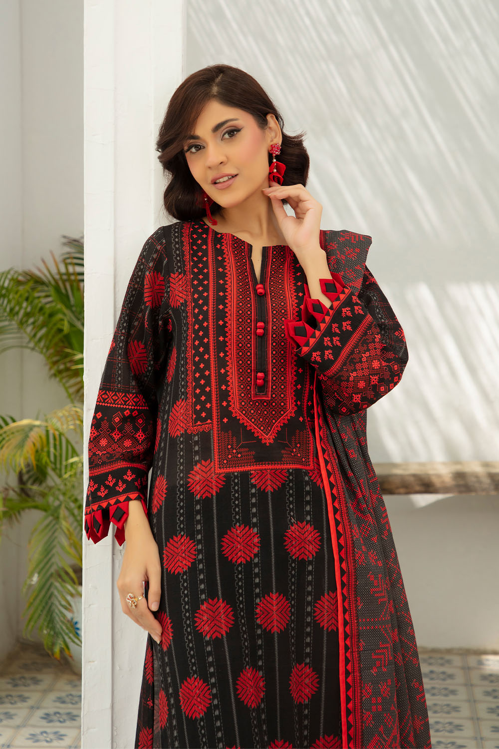 3 Piece Printed Khaddar Suit with Zari Cotton Dupatta SD-52181