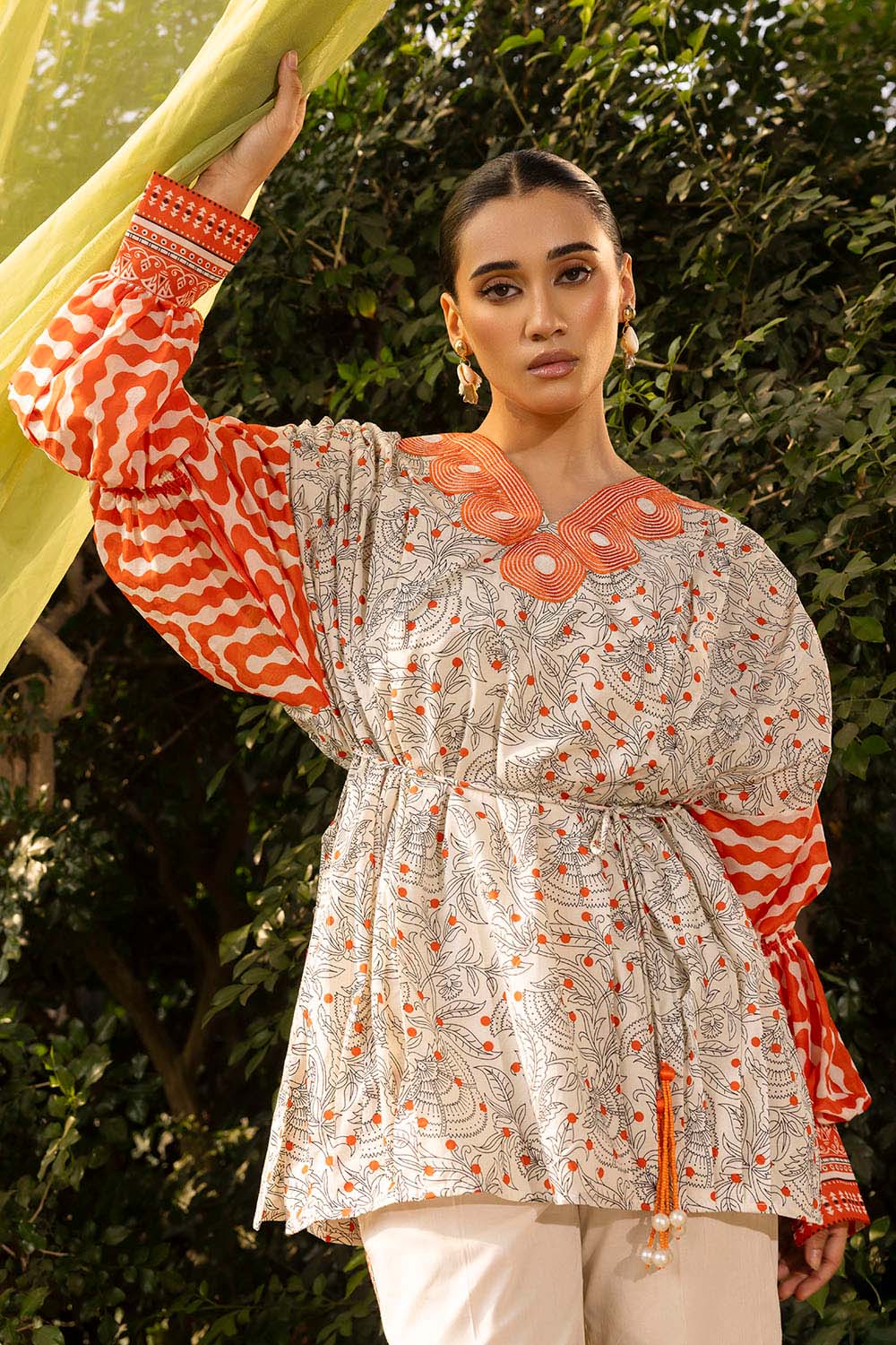 • Printed Lawn Shirt with Embroidered Neckline on Organza – 1.82 Meters