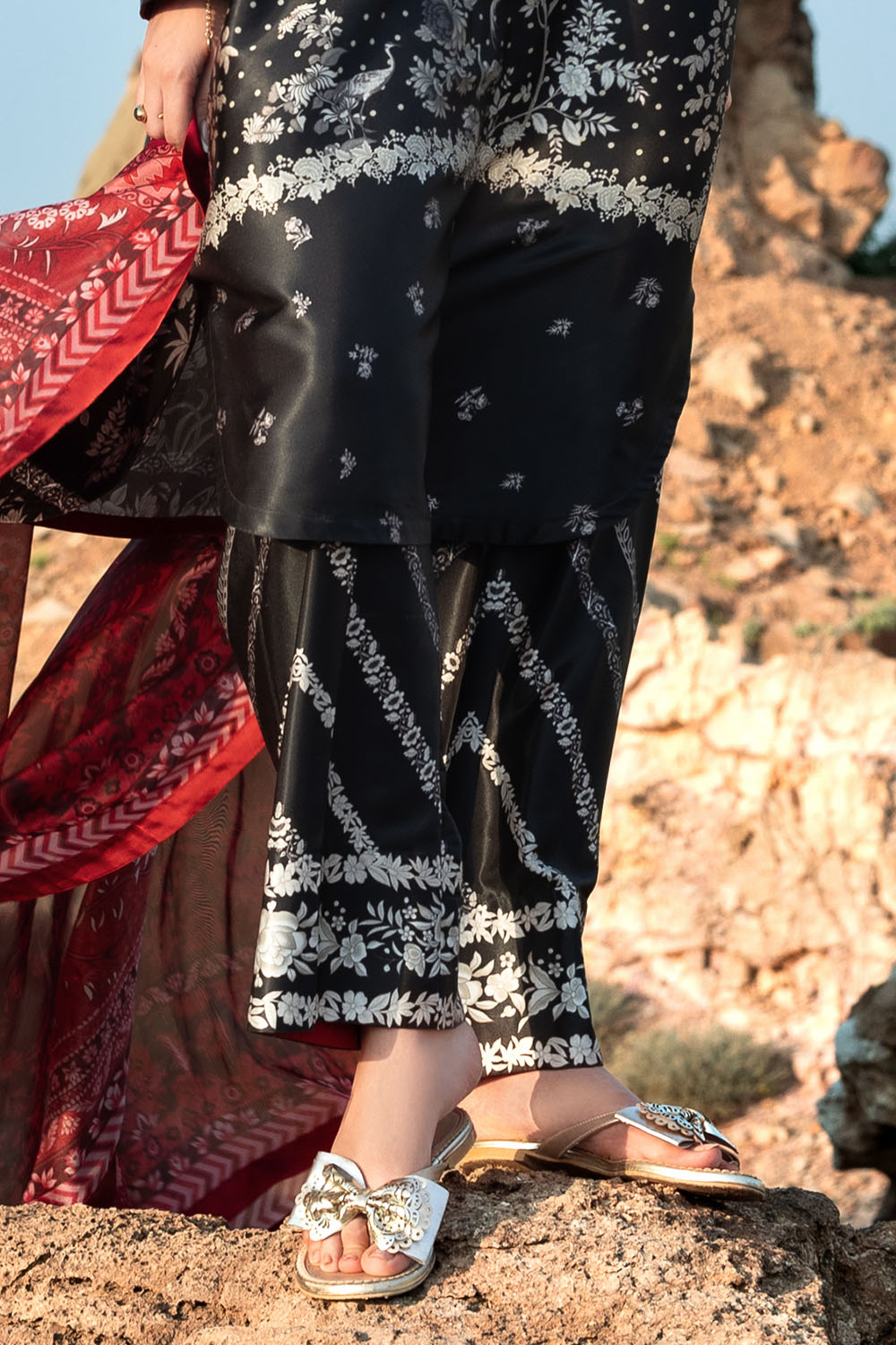 3 Piece Printed Silk Charmeuse Suit with Dupatta S-62003