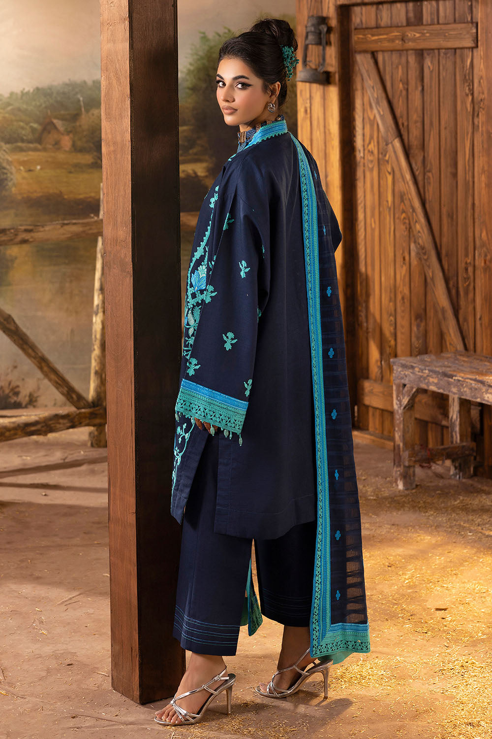 3 Piece Stripe Embroidered Khaddar Suit with Borders and Back K-52102