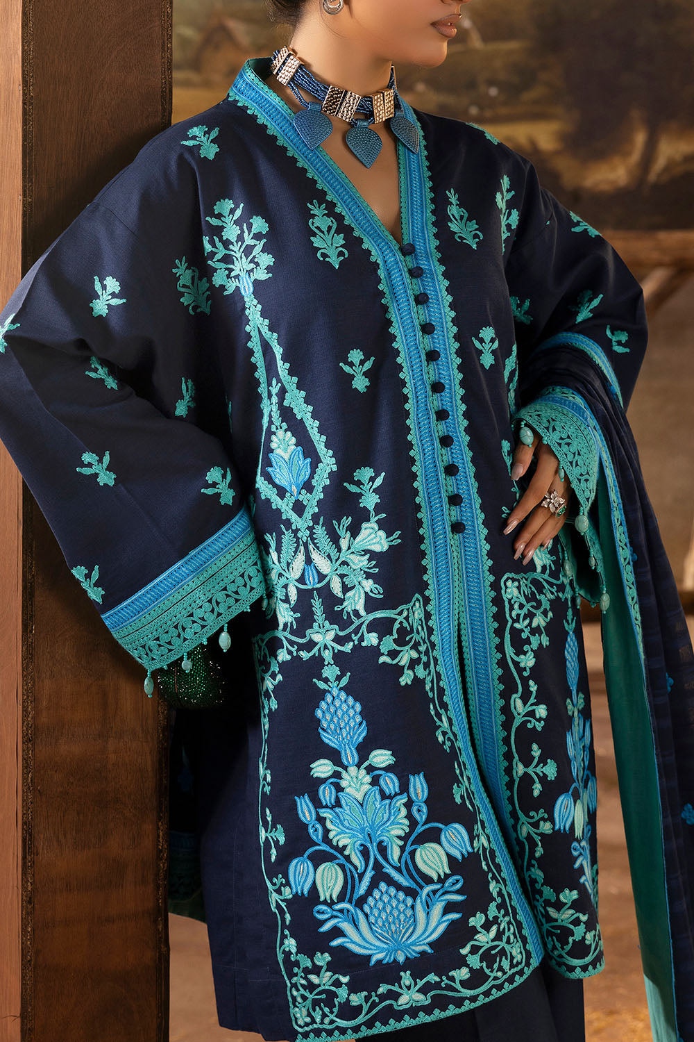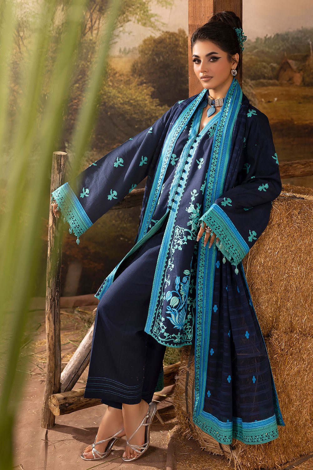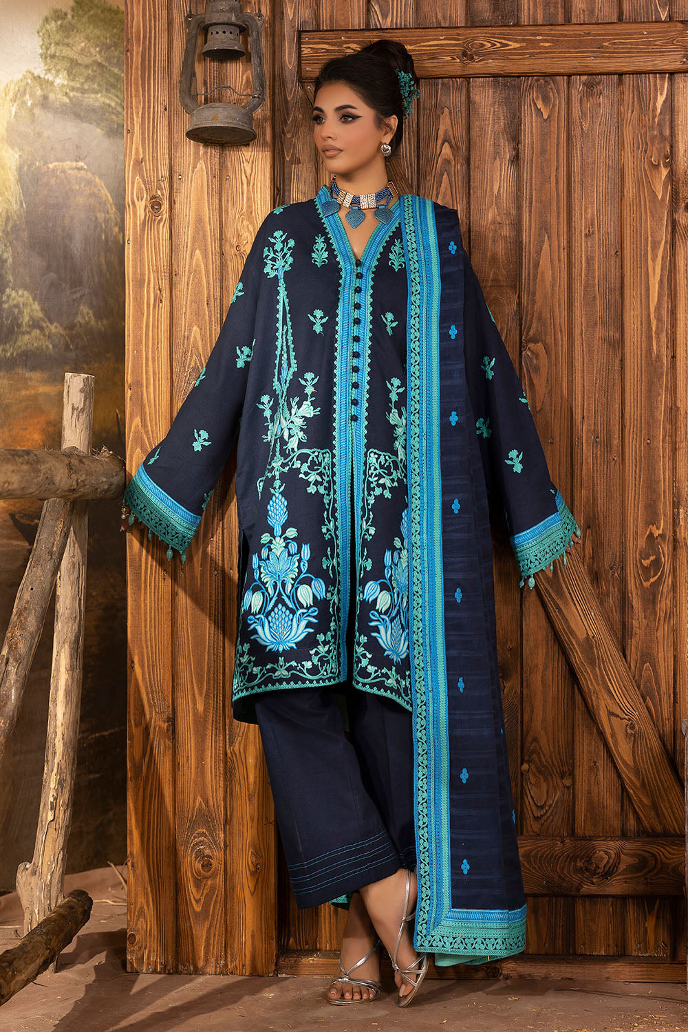 • Embroidered Khaddar Shirt Front & Sleeves with Embroidered Borders for Front & Back on Organza. Dyed Khaddar Back - 3.15