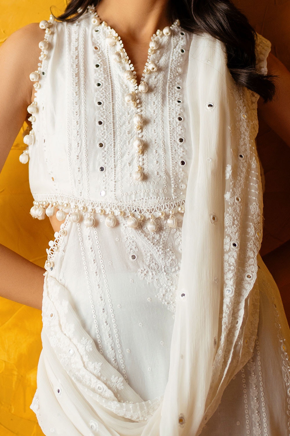 • Sequins Embroidered Lawn Shirt Front with Beads. Sequins Embroidered Lawn Back & Sleeves. Sequins Embroidered Borders for Front, Back & Sleeves on Organza - 2.28 Meters