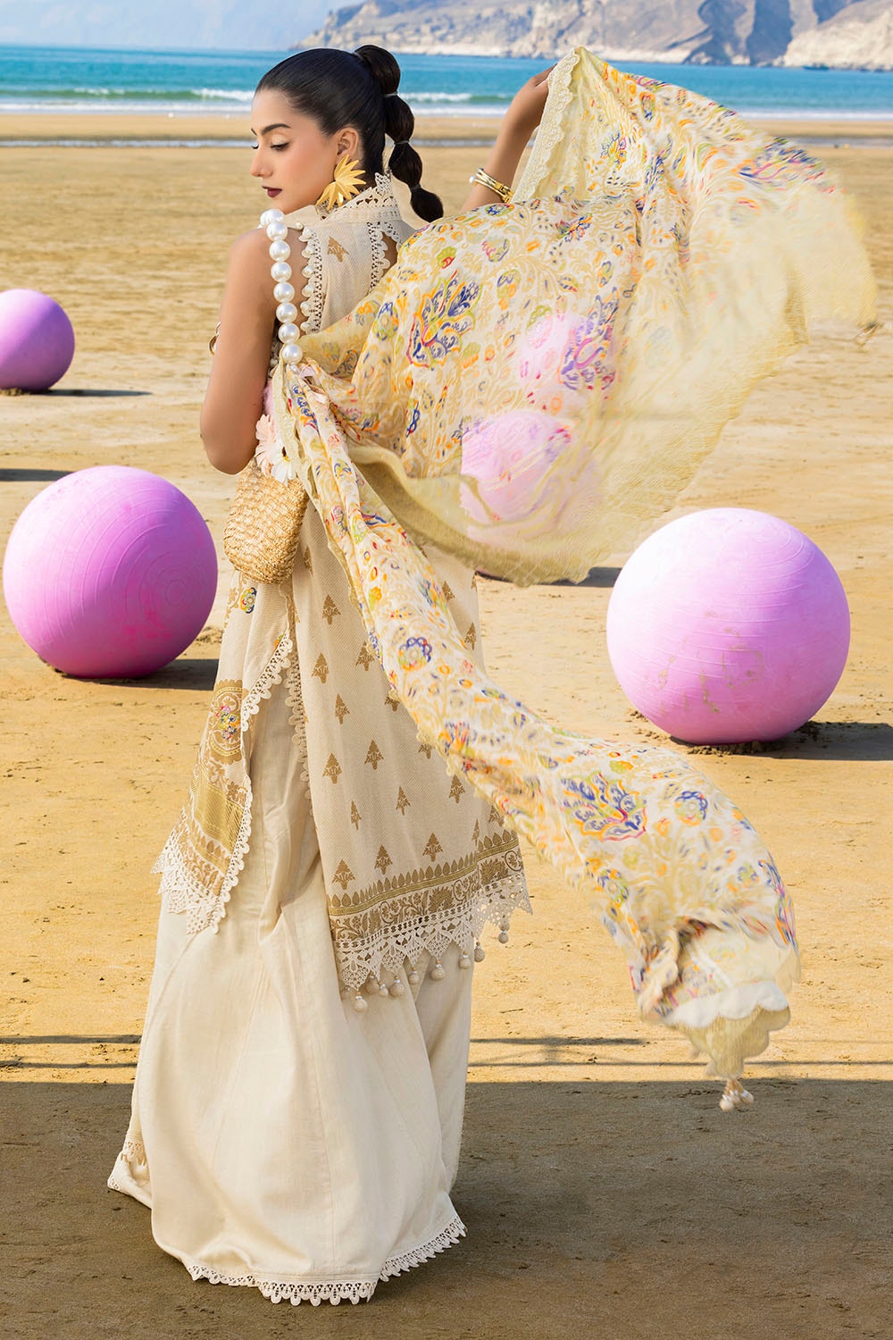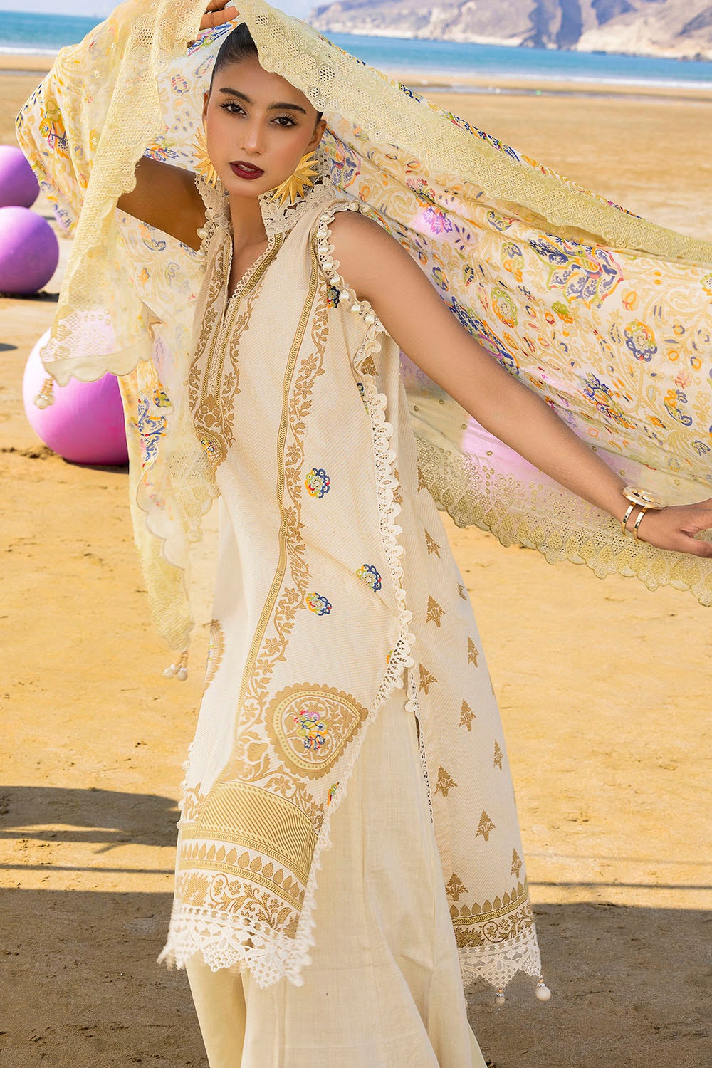 • Embroidered Printed Stripe Chiffon Dupatta - 2.50 Meters