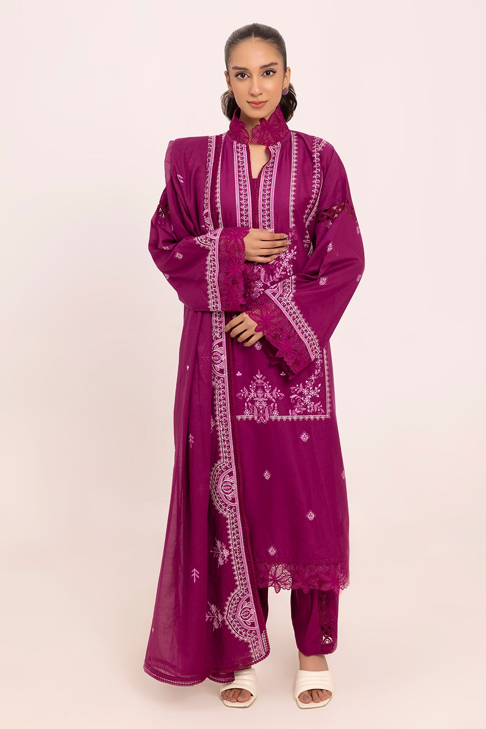 3 Piece Unstithed Embroidered Lawn Suit with Embroidered Denting Lawn Dupatta DN-52014