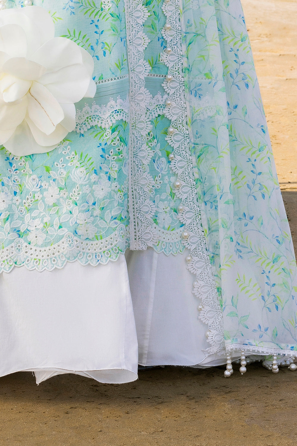 3 Piece Unstithed Embroidered Lawn Suit with Printed Chiffon Dupatta BM-42033