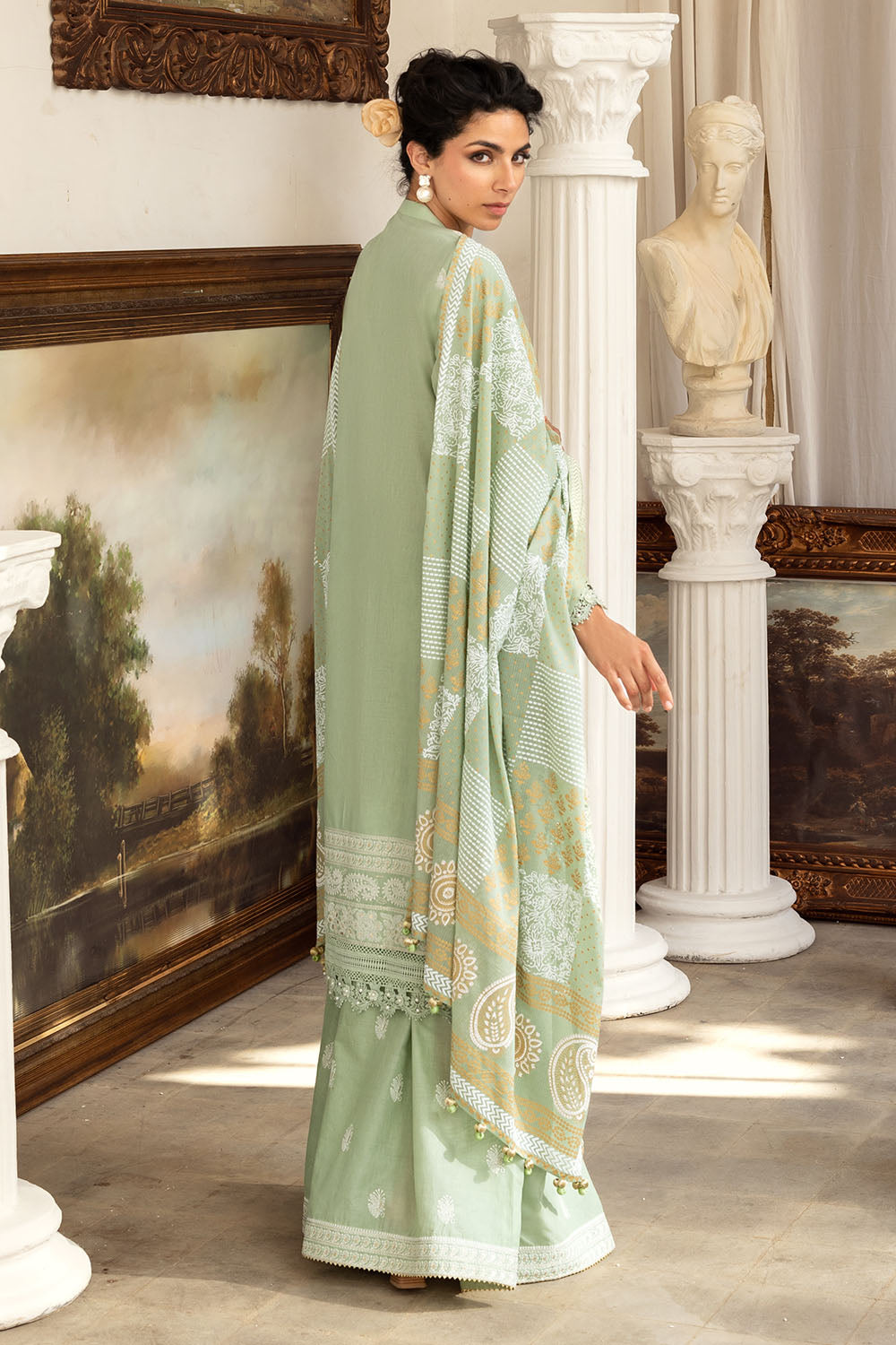 3 Piece Zari & Sequins Embroidered Lawn Suit with Gold & Lacquer Printed Dupatta DN-52038
