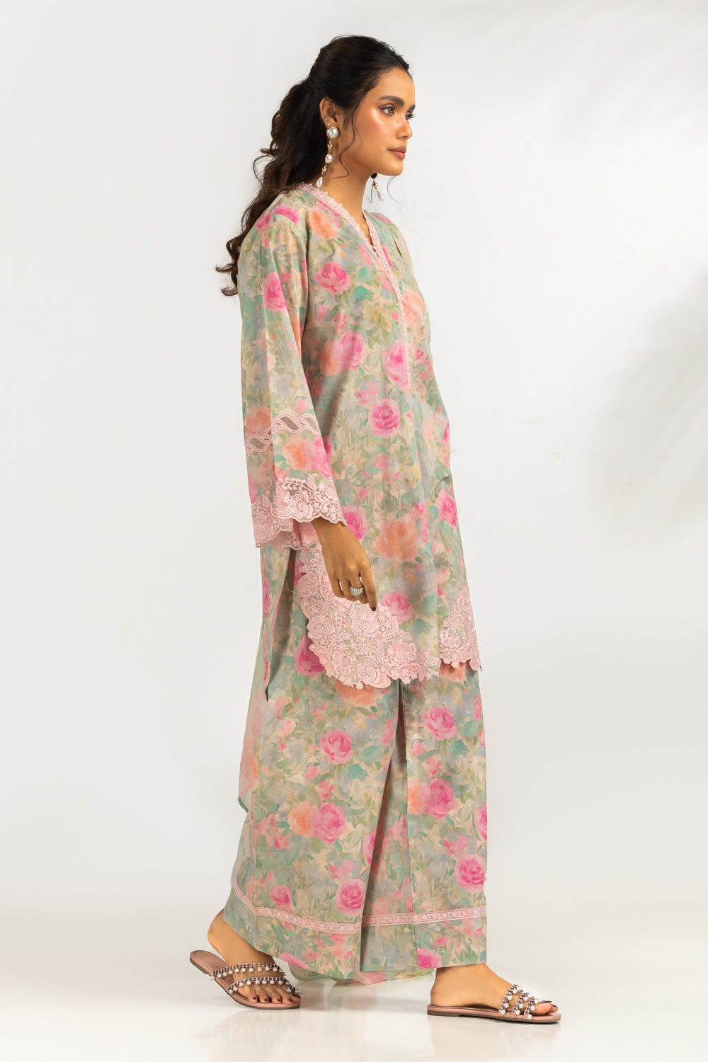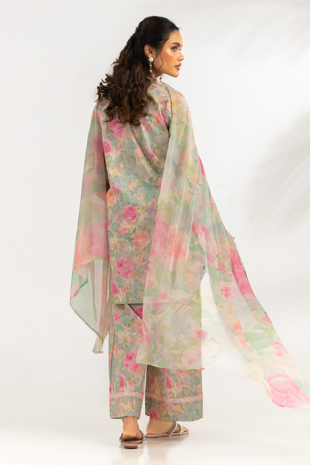 This suit combines a beautiful floral print with minimal embroidery for a balanced look. The fabric feels soft and practical, ensuring comfort throughout the day. A reliable choice for women who prefer colorful yet easy-to-carry outfit.