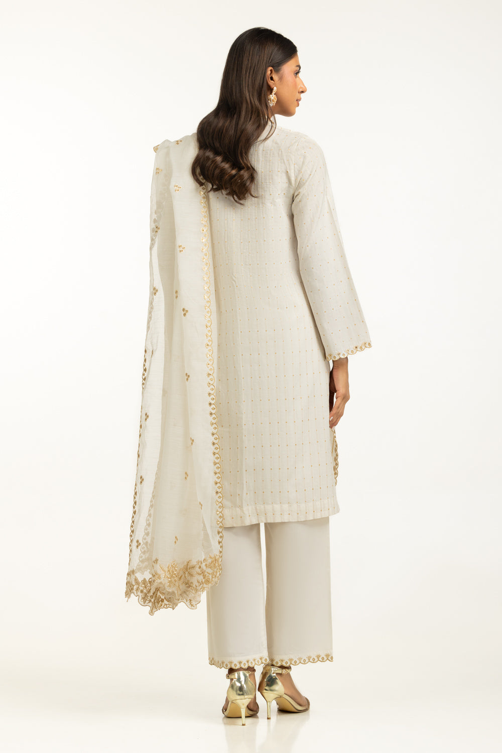 Details: Embroidered suit featuring a V-Neckline with 3D Flowers.
