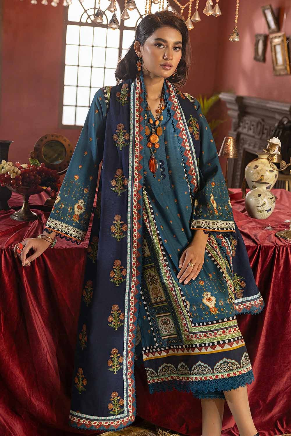 3 Piece Embroidered Khaddar Unstitched Suit K-32019