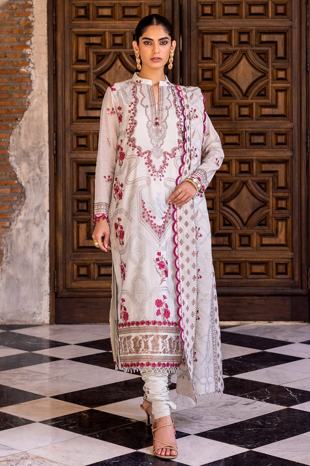 3 Piece Embroidered Paper Cotton Unstitched Suit with Embroidered Paper Cotton Dupatta FE-42064