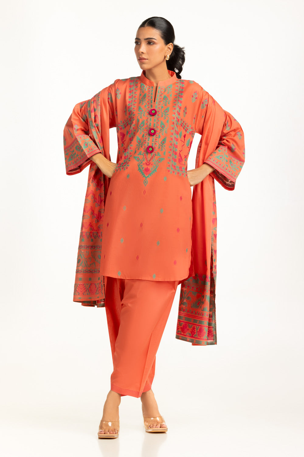 Designed for casual gatherings, this vibrant suit provides comfort without looking flat. The jacquard fabric adds depth, while the loose-fit silhouette prevents heaviness. Paired with a plain dyed trouser, it stays easy to carry in warm weather.