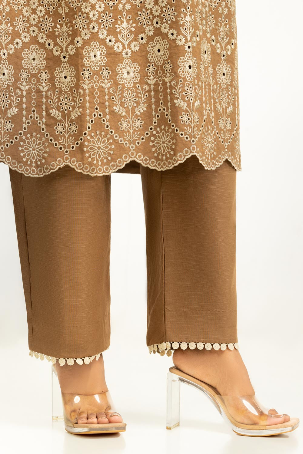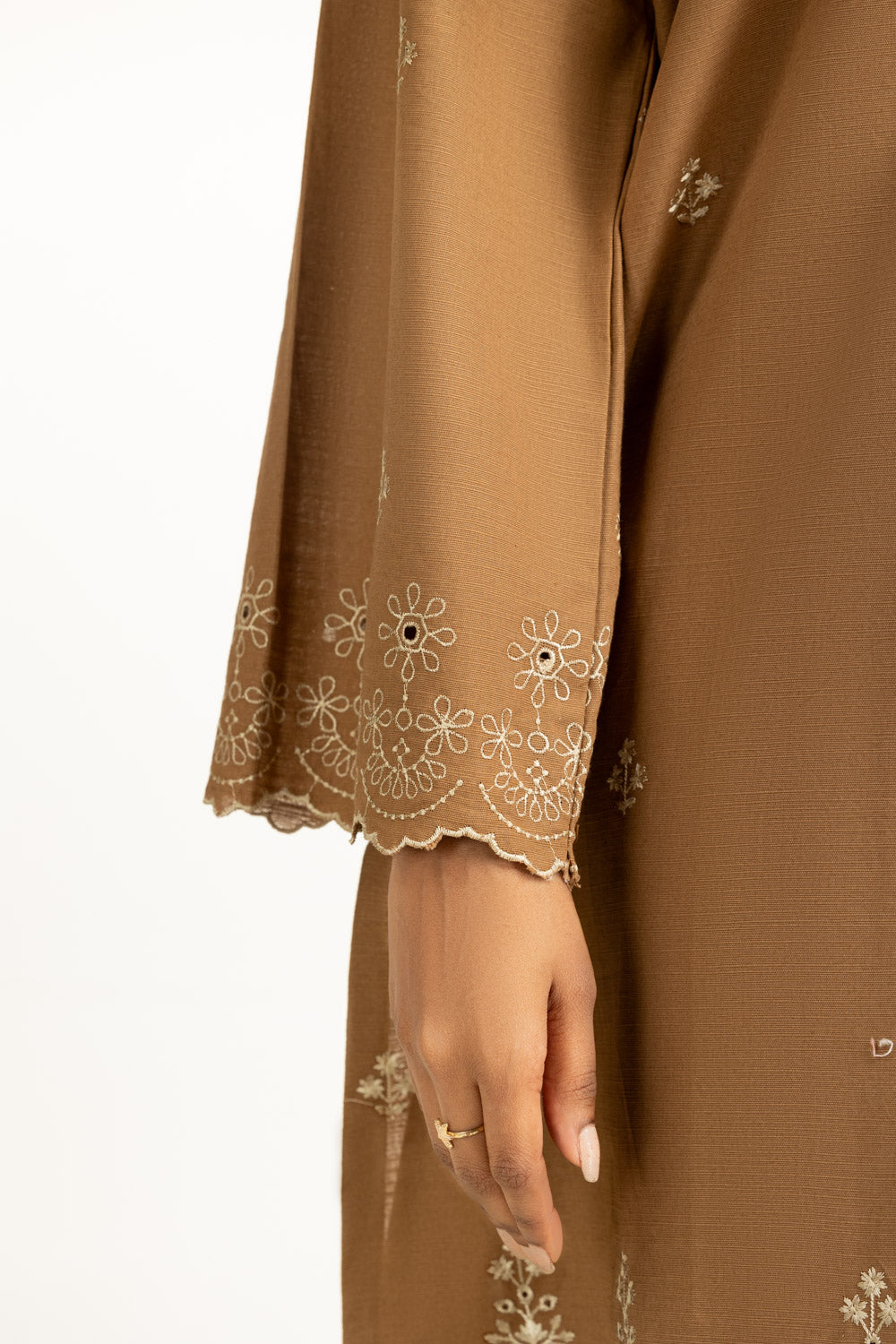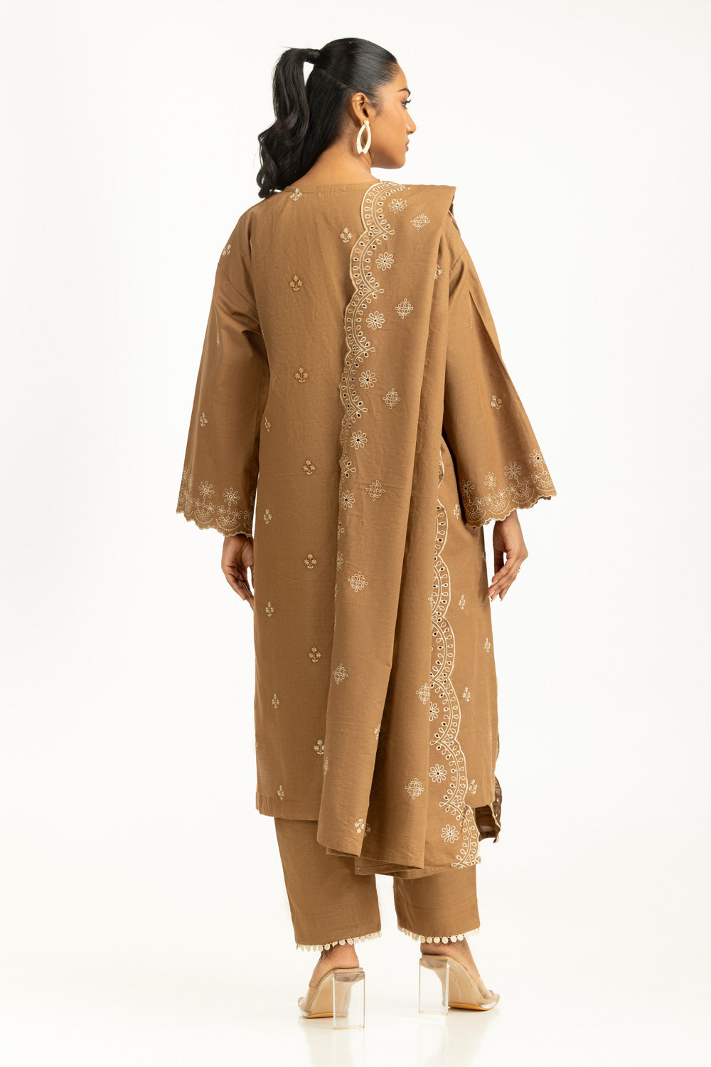 Featuring an earthy brown tone and classic embroidery in this beautiful 3-piece suit. The fabric’s natural weight ensures warmth comfort against winter chill, while the loose fit adds an easy flow. It’s a timeless design that pairs tradition with practical elegance.