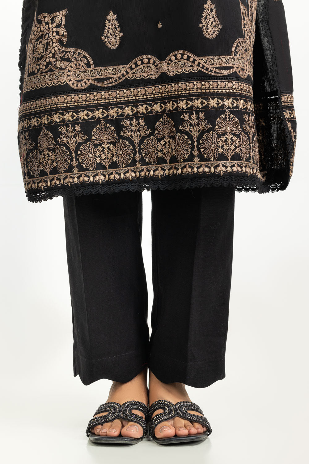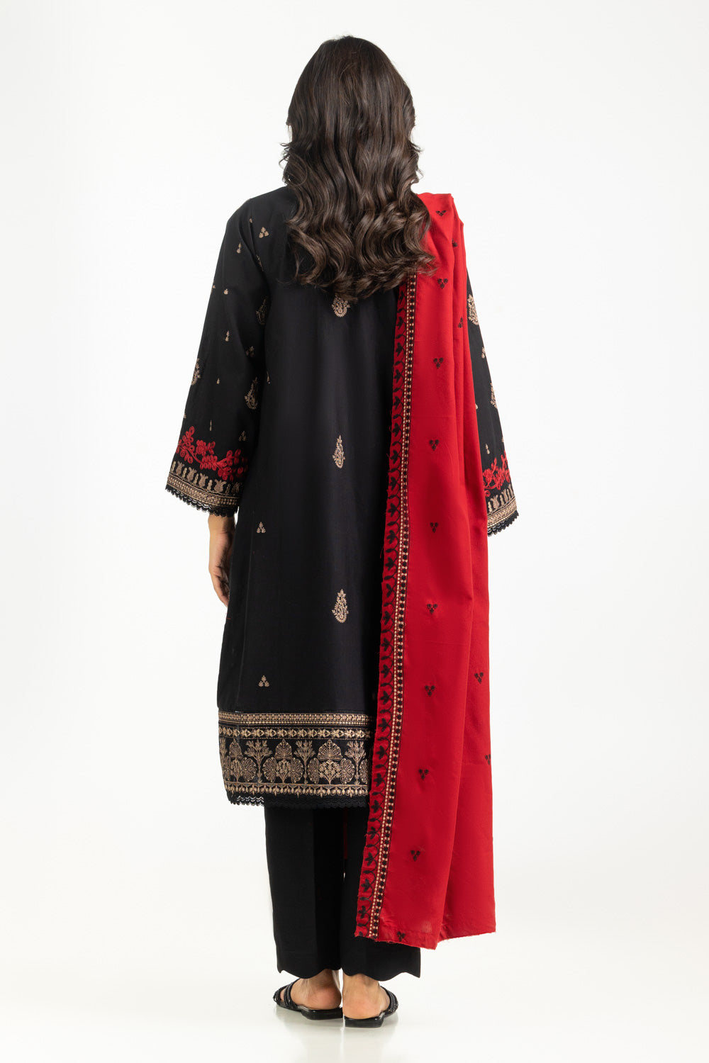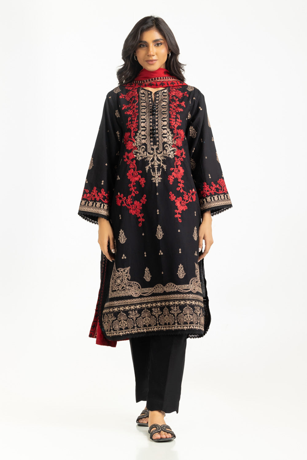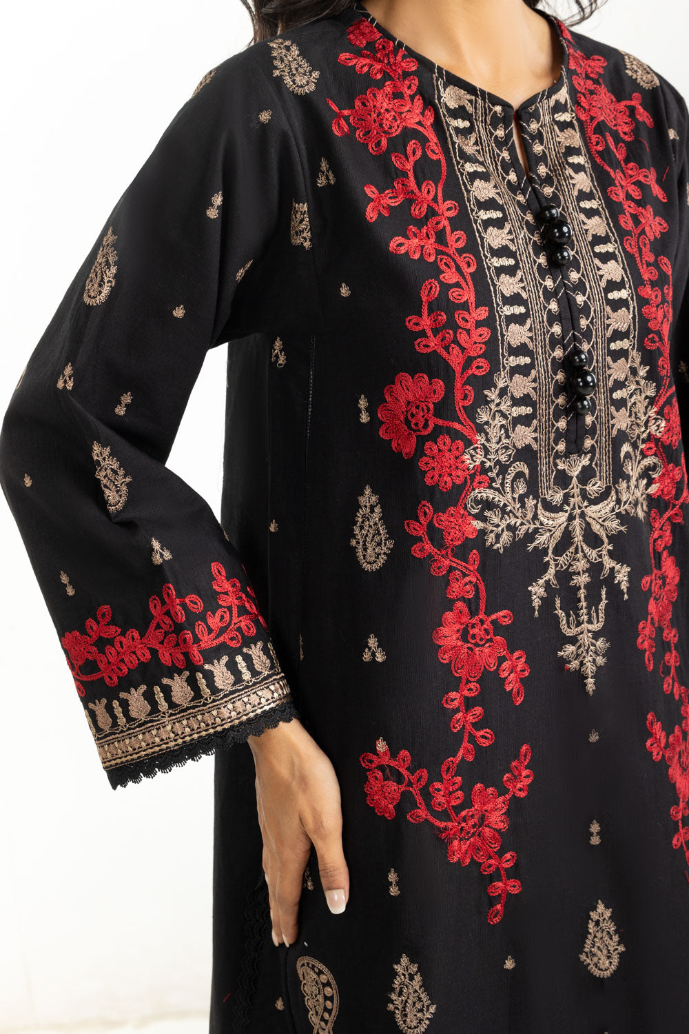 This winter-ready suit, tailored in sturdy khaddar brings warmth and everyday ease with its soft, breathable feel. The embroidery adds subtle detail without compromising comfort for long wear. Its loose fit keeps movement relaxed, making it ideal for busy winter routines.