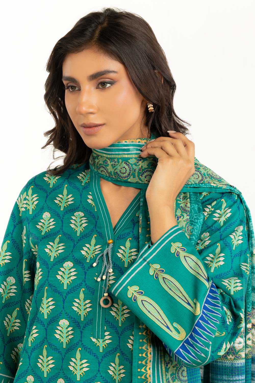 Softly structured and effortlessly chic. This khaddar printed suit blends natural warmth with refined design. The plain trousers balance the print for a cohesive finish. A must-have for winter’s everyday elegance.