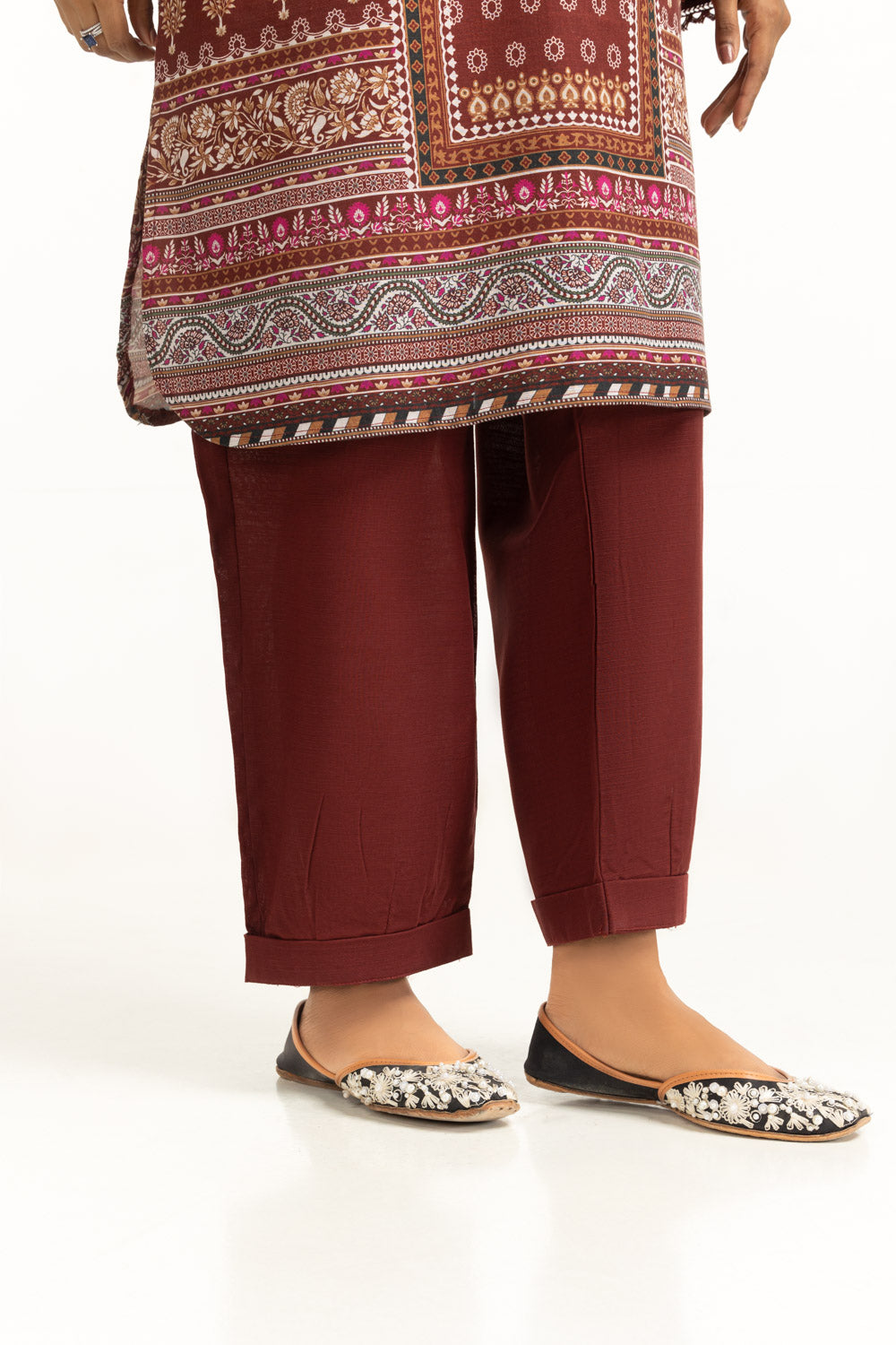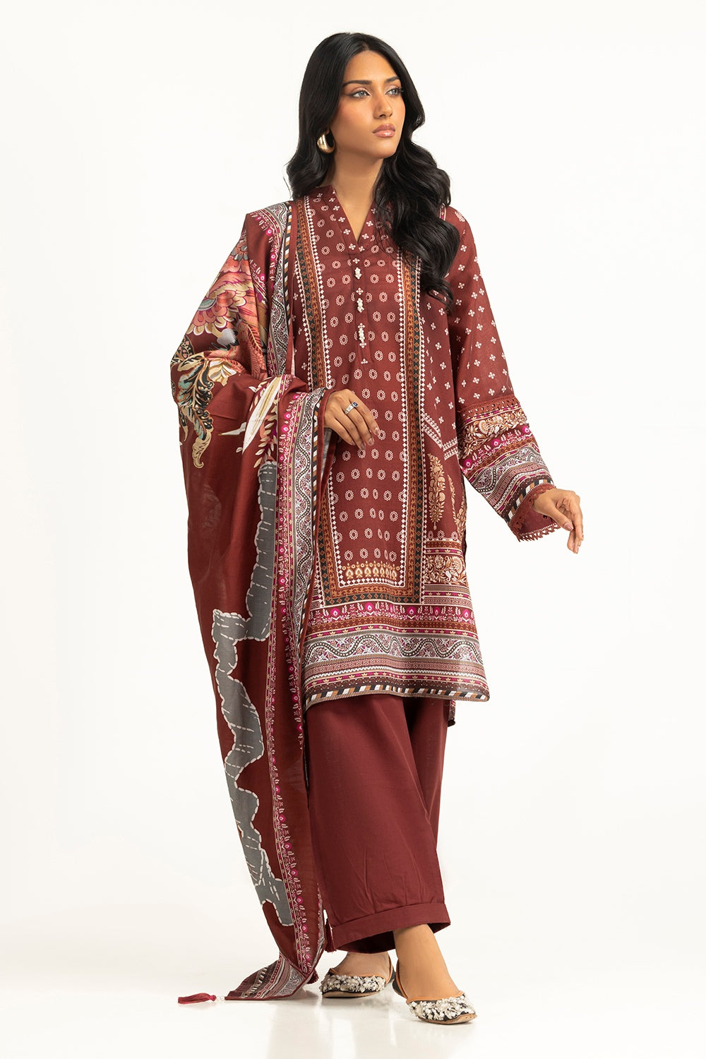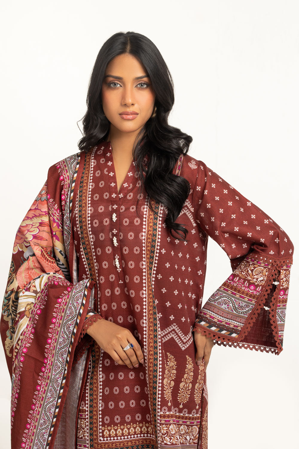 Constructed from warming khaddar fabric, this traditional outfit is built for high-performance wear in winters without compromising on style. The embellished neckline allows for easy dressing, while the dark earthy tone keeps it grounded. Detailed with minimal lacework on the slit sleeves, offer a trendy look that stays breezy, making it a practical choice for women on the move.