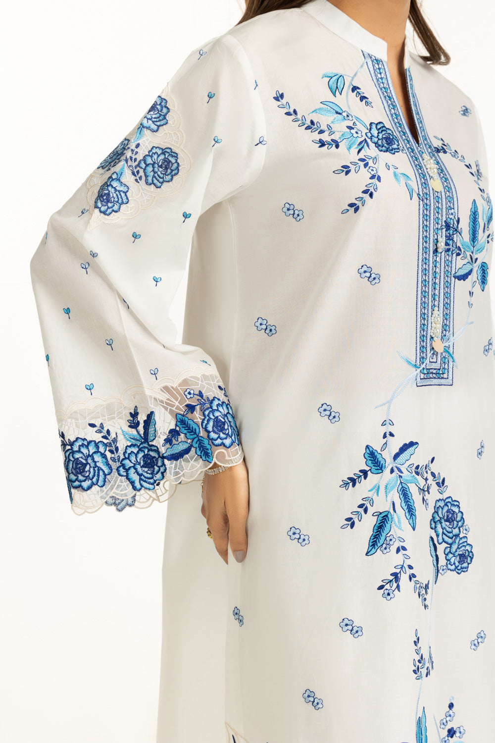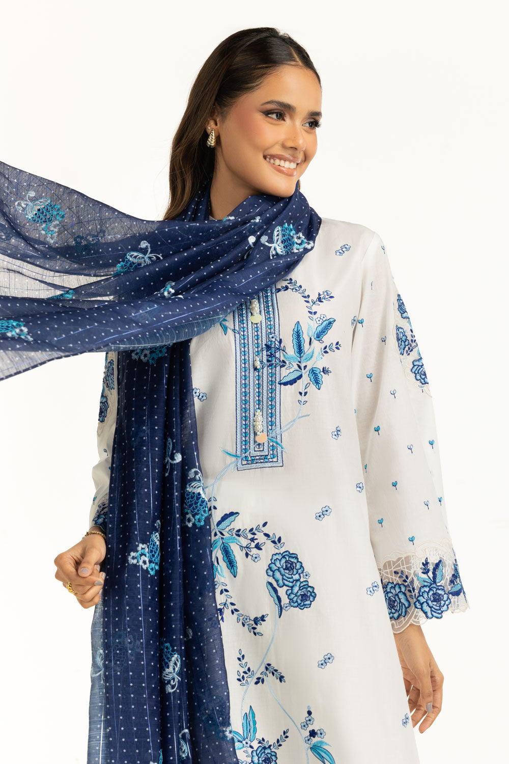 Clean white base enhances the freshness of breathable lawn during warm summer days, while the floral embroidery keeps the look light and visually balanced, ideal for daytime gatherings and casual formal wear.