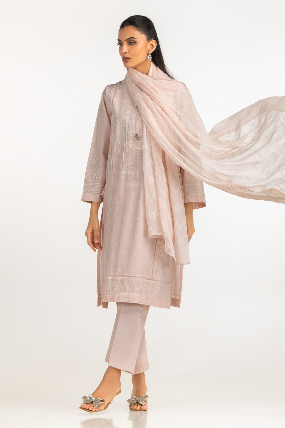 With its regular fit and lightweight lawn fabric, this suit is designed for functional everyday wear. The soft pink tone adds a lively yet traditional feel, while the embroidery gives subtle texture to the outfit. Paired with a breezy chiffon dupatta, it allows effortless movement and remain comfortable for extended wear.