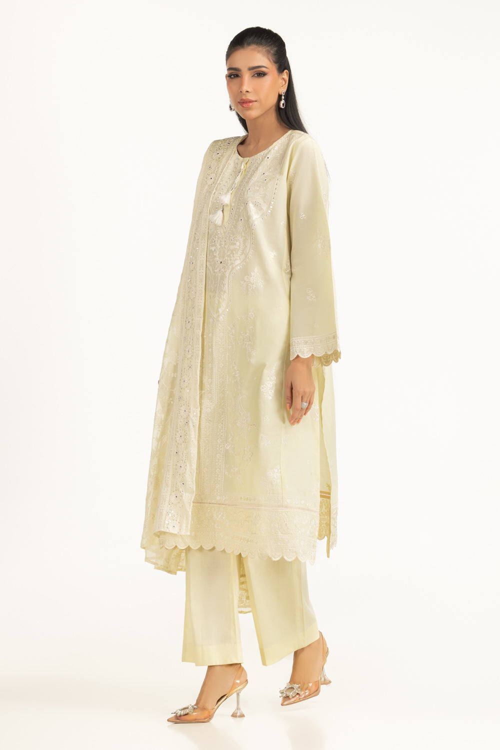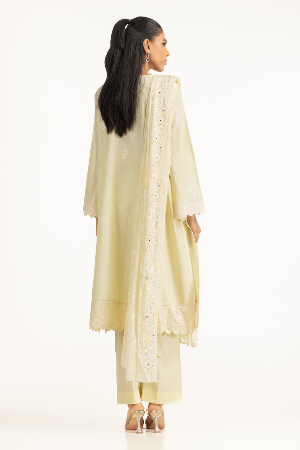 This lawn suit brings a soft and refreshing feel to summer dressing. The loose fit allows comfort during warm weather, preventing the fabric from feeling heavy. A beautifully embroidered shirt and dupatta is paired with a plain dyed trouser, keeping the outfit light and balanced.