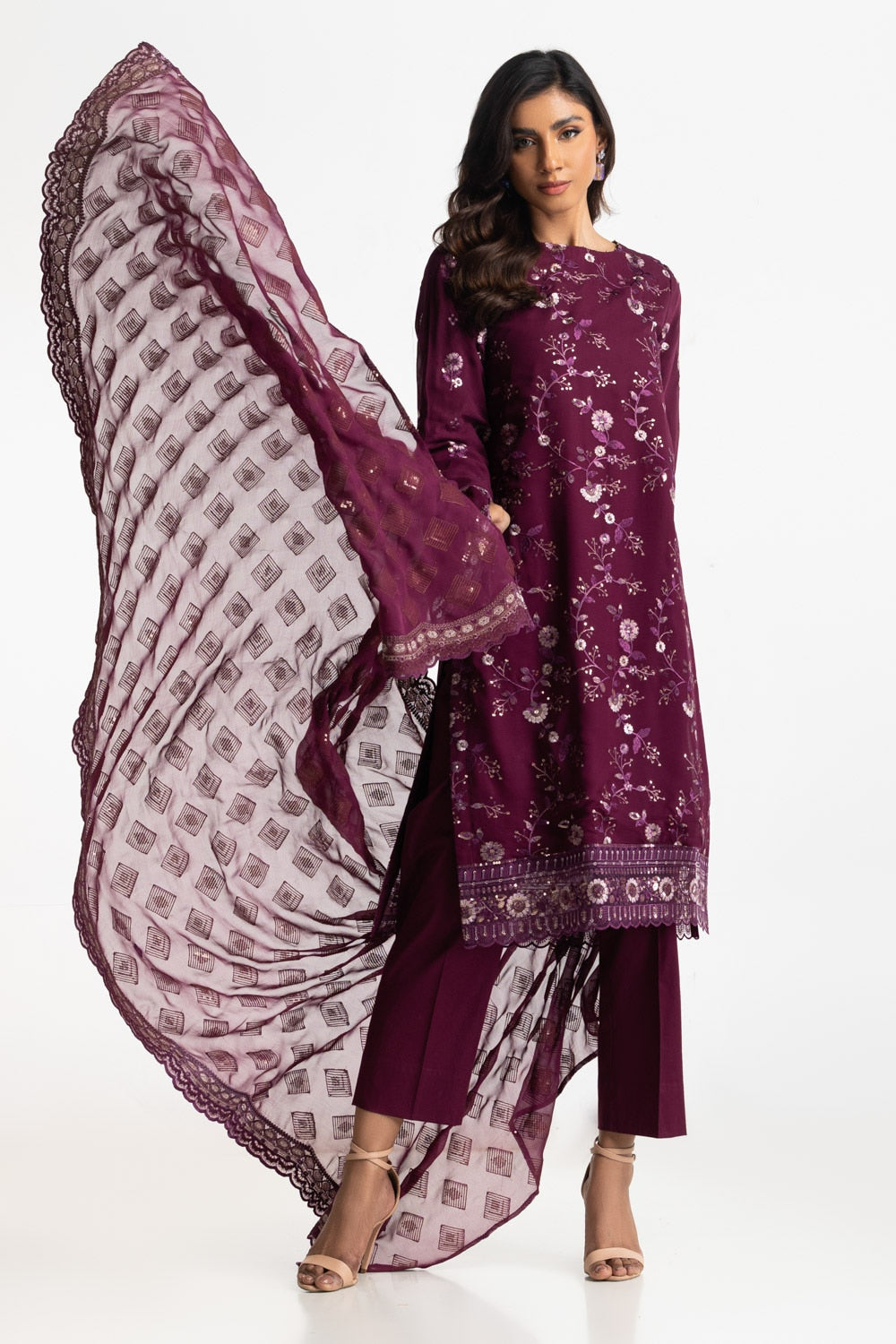 Graceful suit, showcasing intricate embroidery on the shirt and dupatta, while the matching trouser completes the festive look. This ensemble is ideal for adding a traditional touch to your wardrobe.