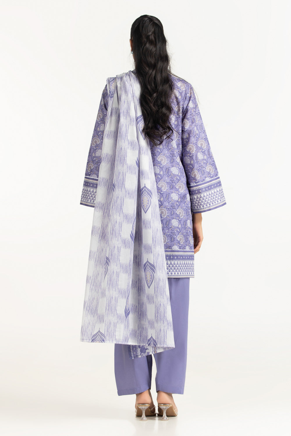 With its soft purple shade, this lawn suit offers a relaxed and wearable summer option. The airy loose fit supports movement and comfort in warm conditions. Paired with a solid trouser, it remains versatile for casual days out.