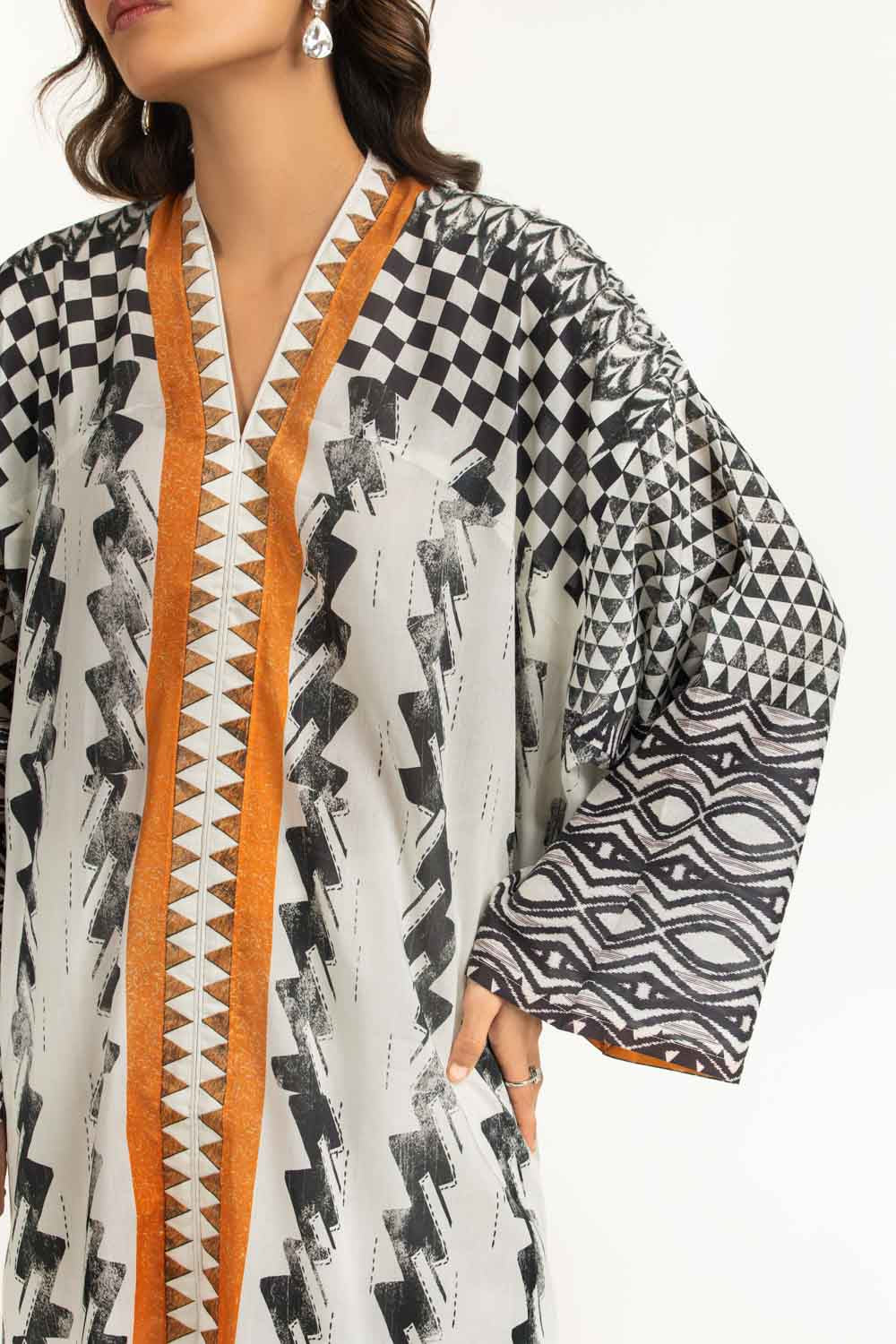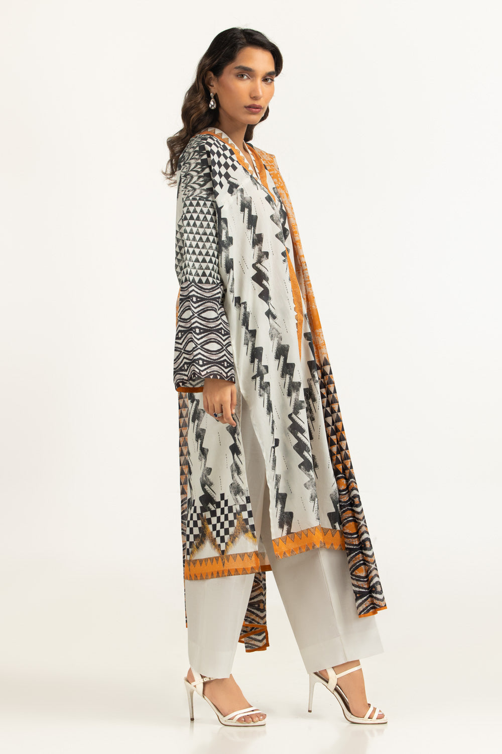 This contemporary printed lawn suit is tailored for comfort-focused summer styling. The relaxed cut allows easy movement, while the soft lawn fabric remains gentle and breathable throughout the day. Styled with a plain dyed trouser, it offers a balanced look for casual outings.