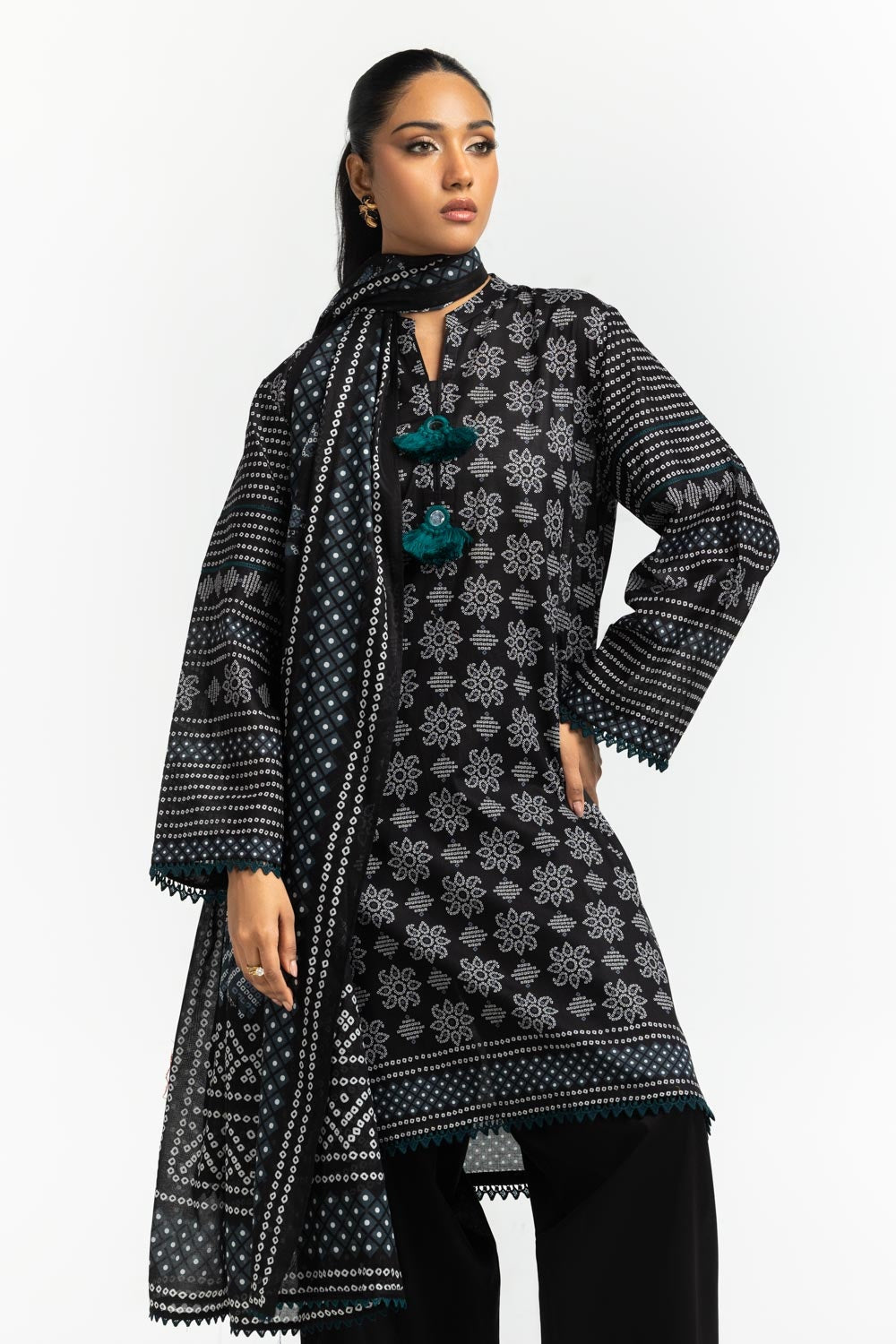Adorn the grace with this on-trend ensemble, featuring a contemporary print and subtle detailing. Crafted from breathable lawn fabric for ultimate comfort in warmer days.