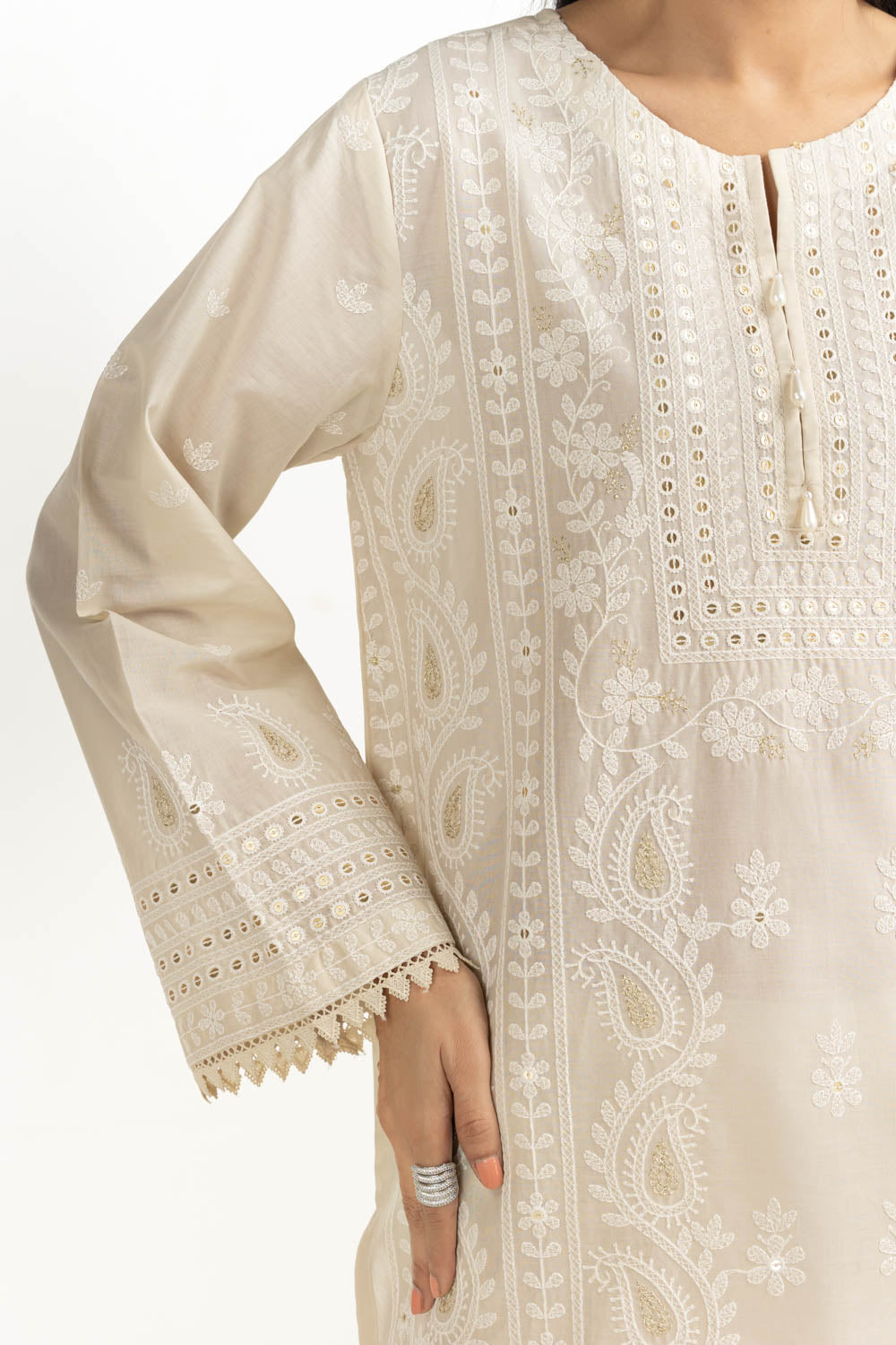 Lightweight lawn and relaxed tailoring allow this outfit to stay comfortable, while the sequence detailing that keeps it elegant all day long. Making it ideal for summer lunches and small gatherings.
