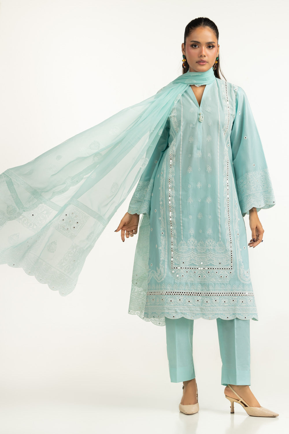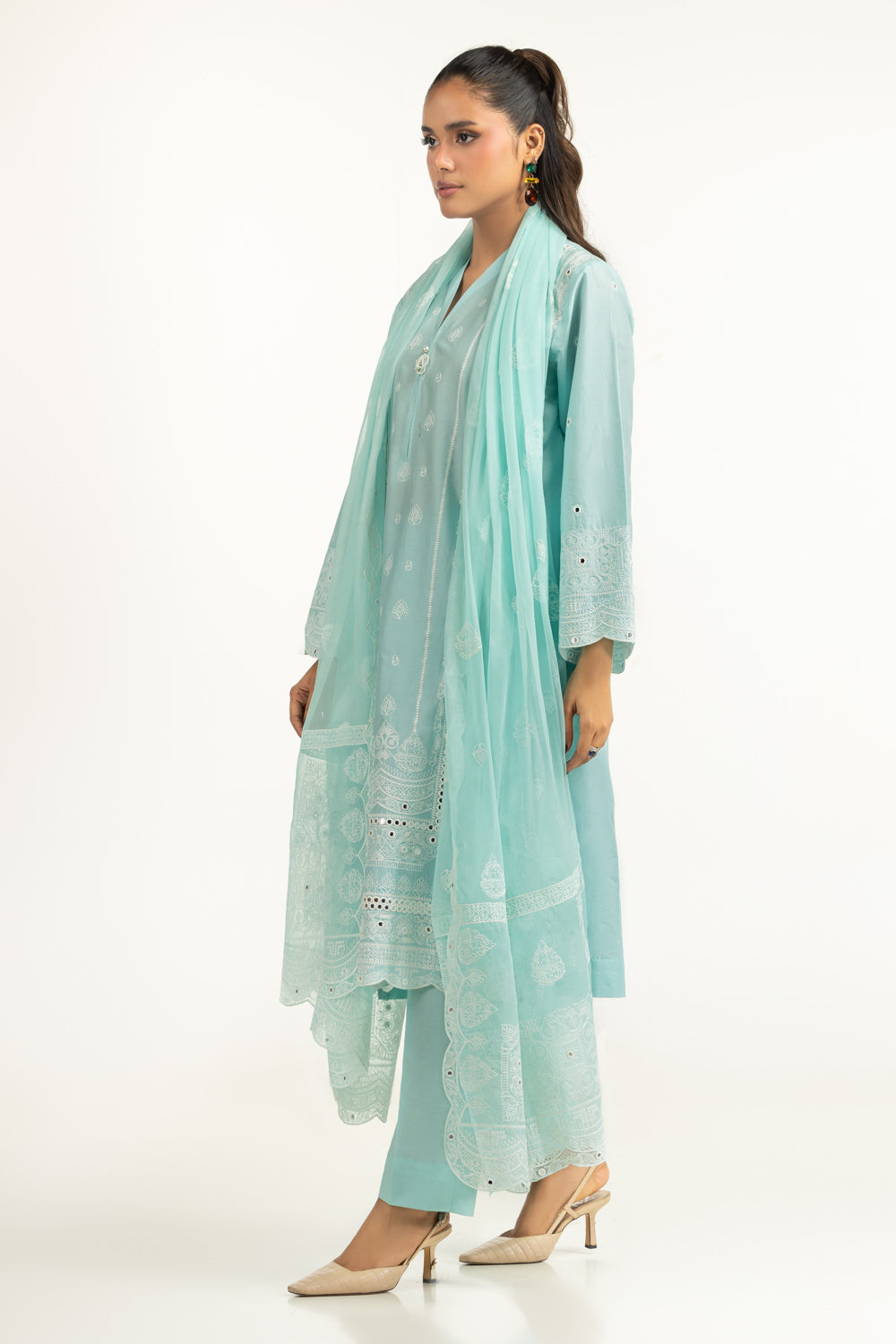 A refreshing color palette and breathable fabric blends to create an outfit meant for unmatched summer comfort. The relaxed-fit silhouette helps maintain the airflow, preventing heaviness in harsh summer. Balanced with a plain trouser, the embroidered shirt and dupatta remains chic throughout the day.