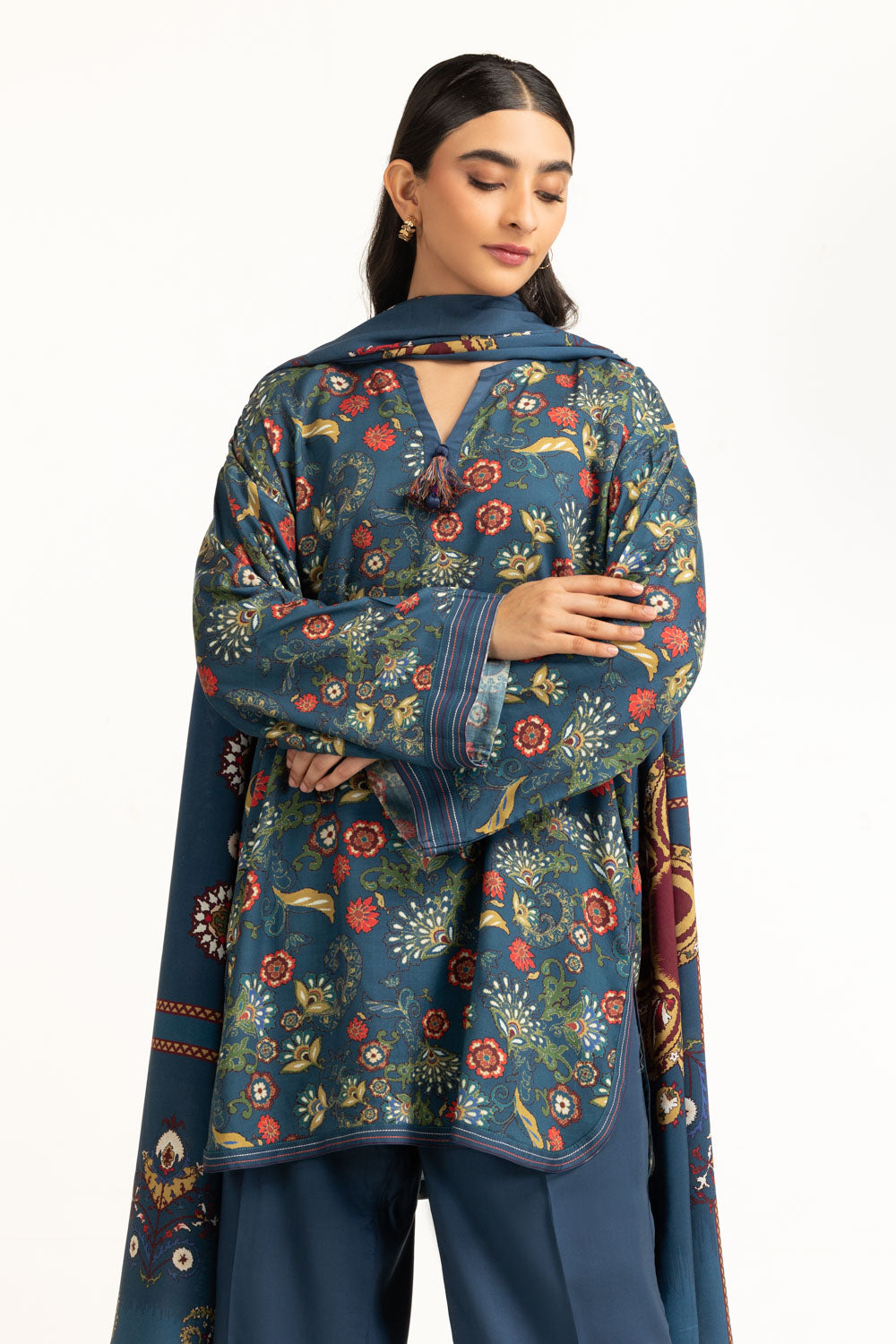 3PC Linen Printed Suit IUSTKSD-1231